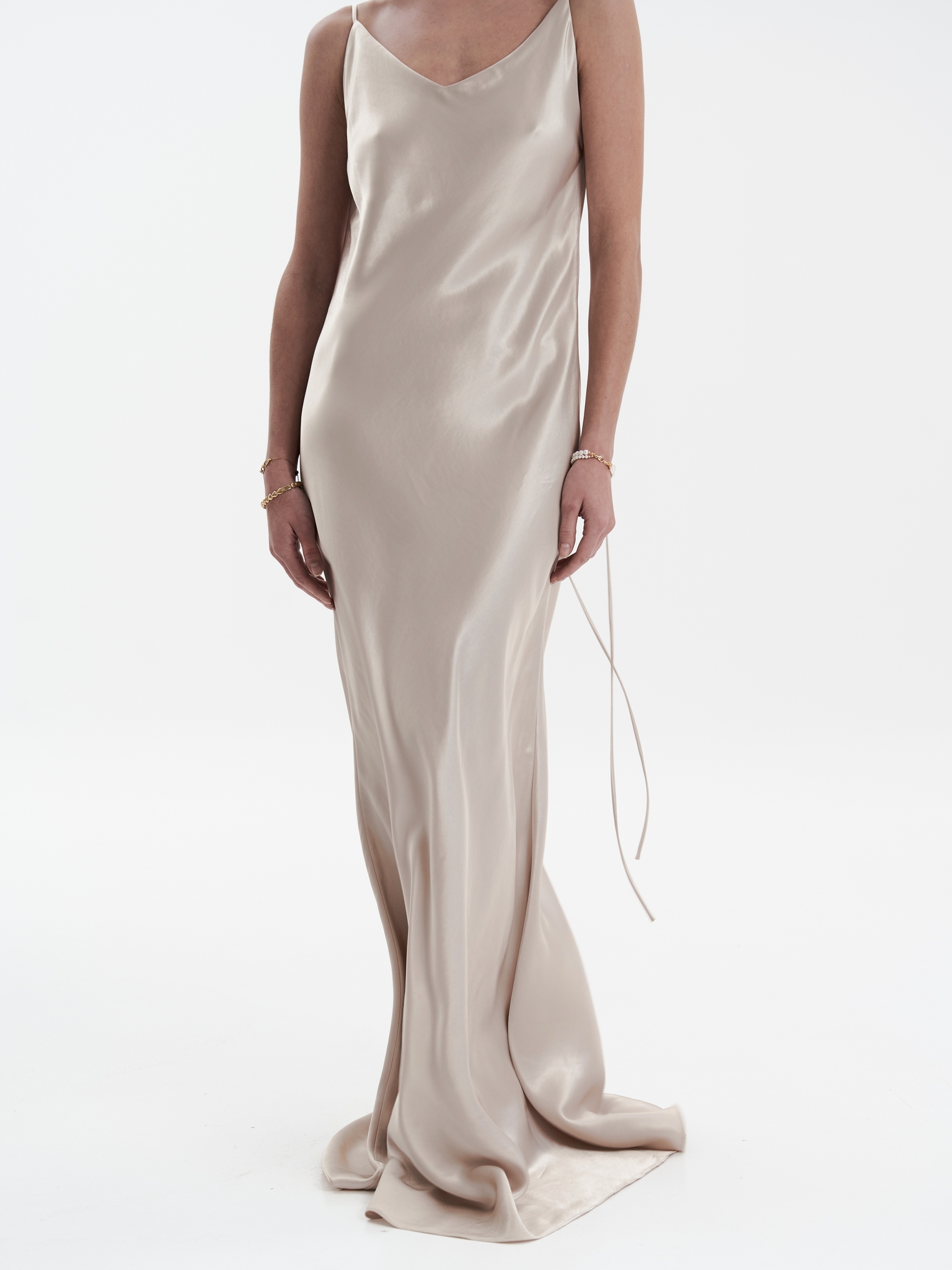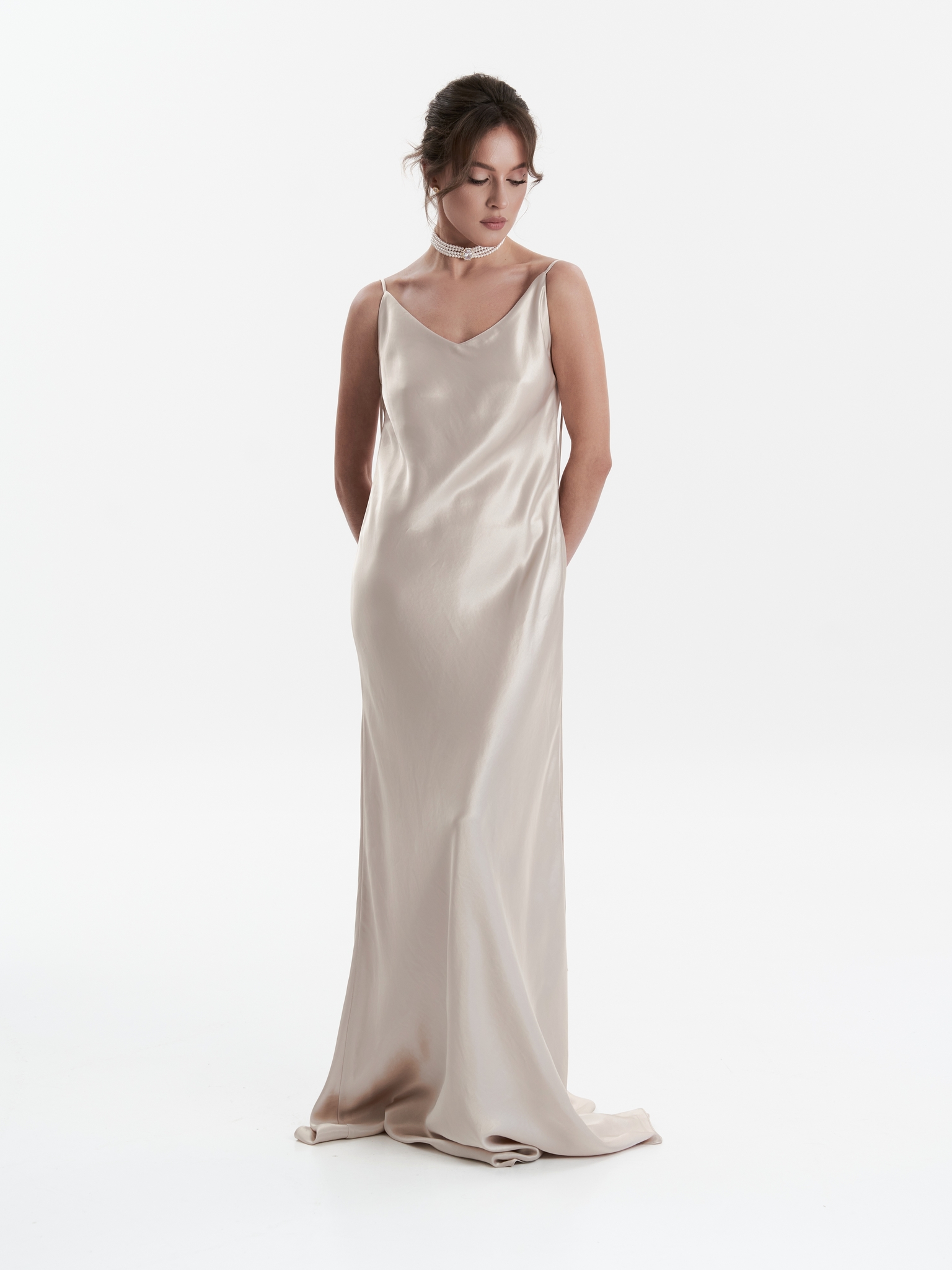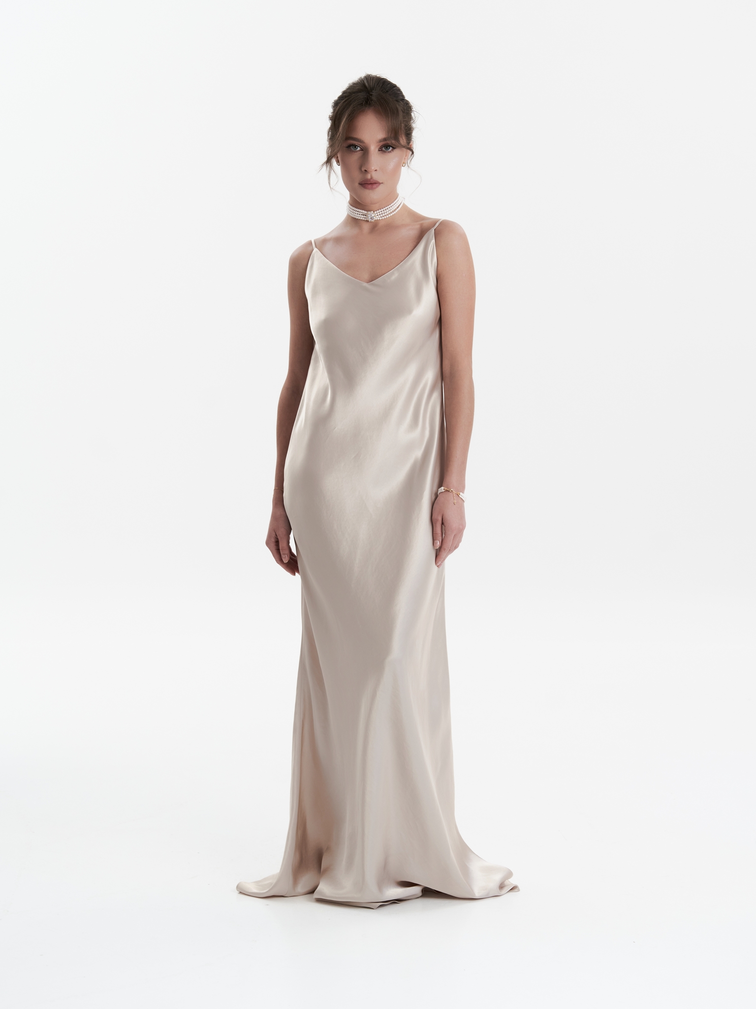 Это потрясающее бежевое платье с открытой спинкой — идеальный выбор для тех, кто хочет выделиться на любом мероприятии. Уникальный дизайн с открытой спинкой добавляет нотку соблазнительности и делает платье особенно привлекательным. Платье словно обнимает фигуру в верхней части, что создает изысканный и утонченный силуэт. Этот крой подходит для различных типов фигур, подчеркивая достоинства и скрывая недостатки. Это платье станет отличным выбором для вечерних мероприятий, свадеб или коктейльных вечеринок.