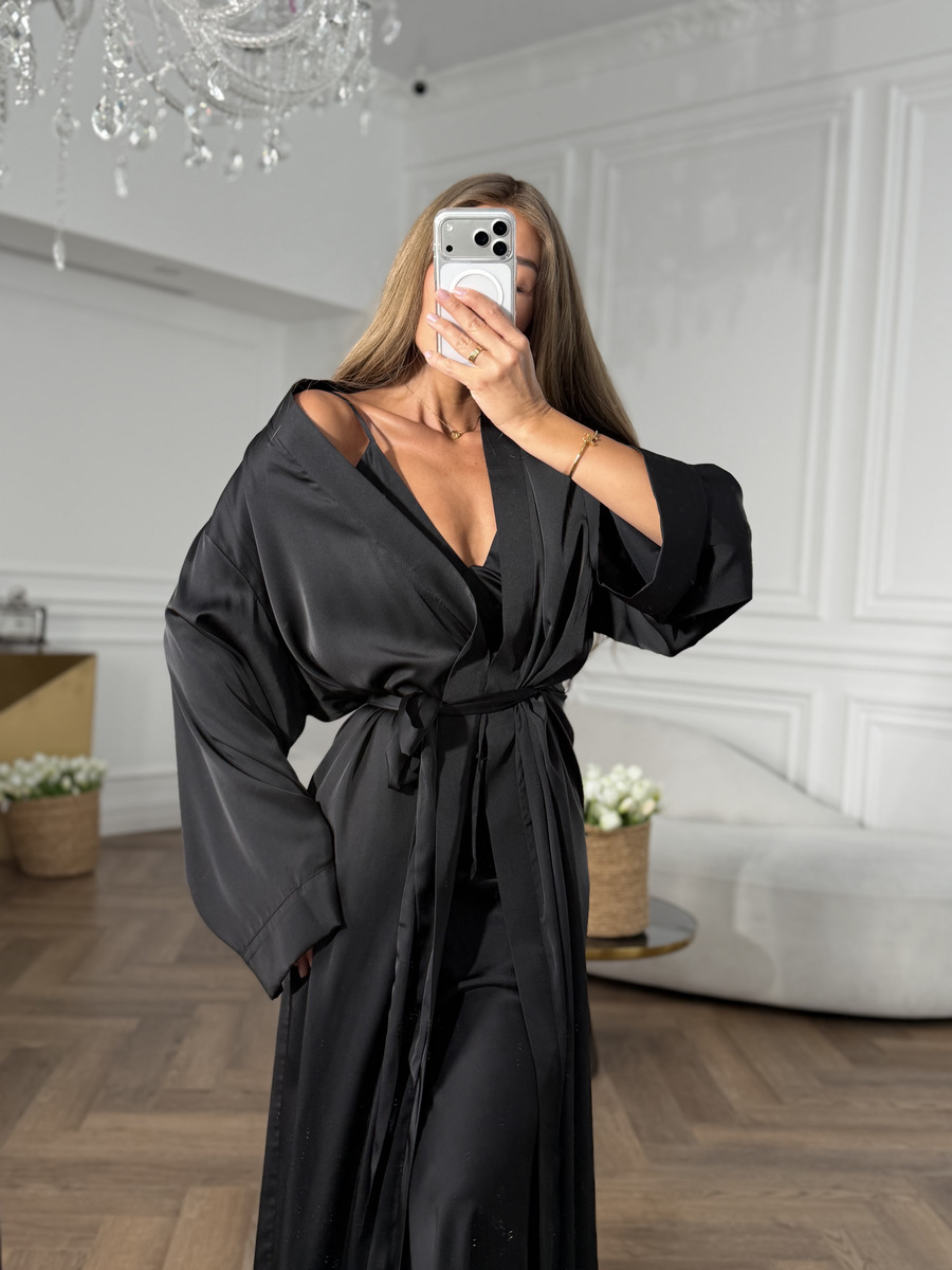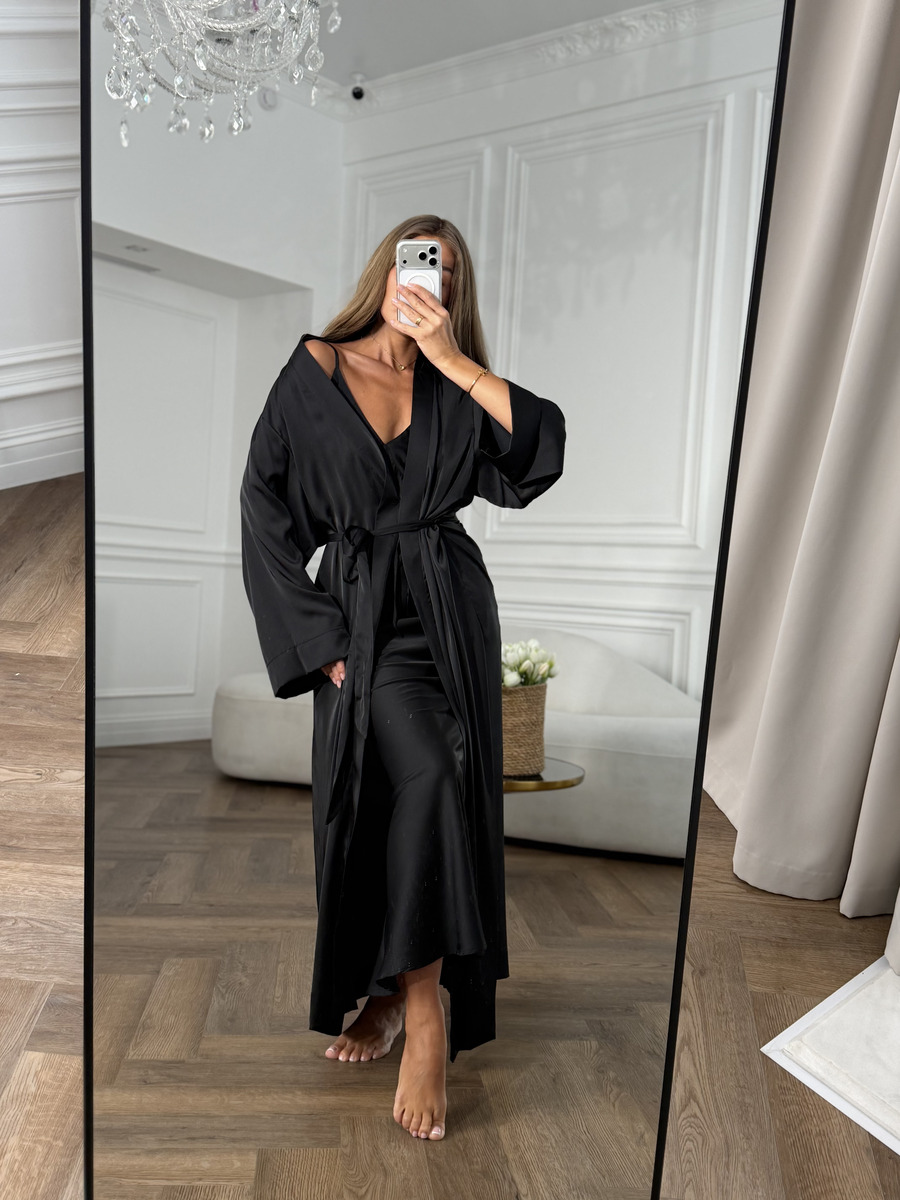 Этот черный халат из мягкого хлопка и вискозы - это сочетание комфорта и элегантности. Его легкий и воздушный материал приятен к телу и идеально подходит для уютных домашних вечеров или утренних ритуалов. Стильный крой и нейтральный цвет делают его универсальным и легко сочетаемым с любой домашней одеждой. Такой халат добавит вашему отдыху нотки роскоши и тепла, создавая ощущение уюта и заботы о себе.