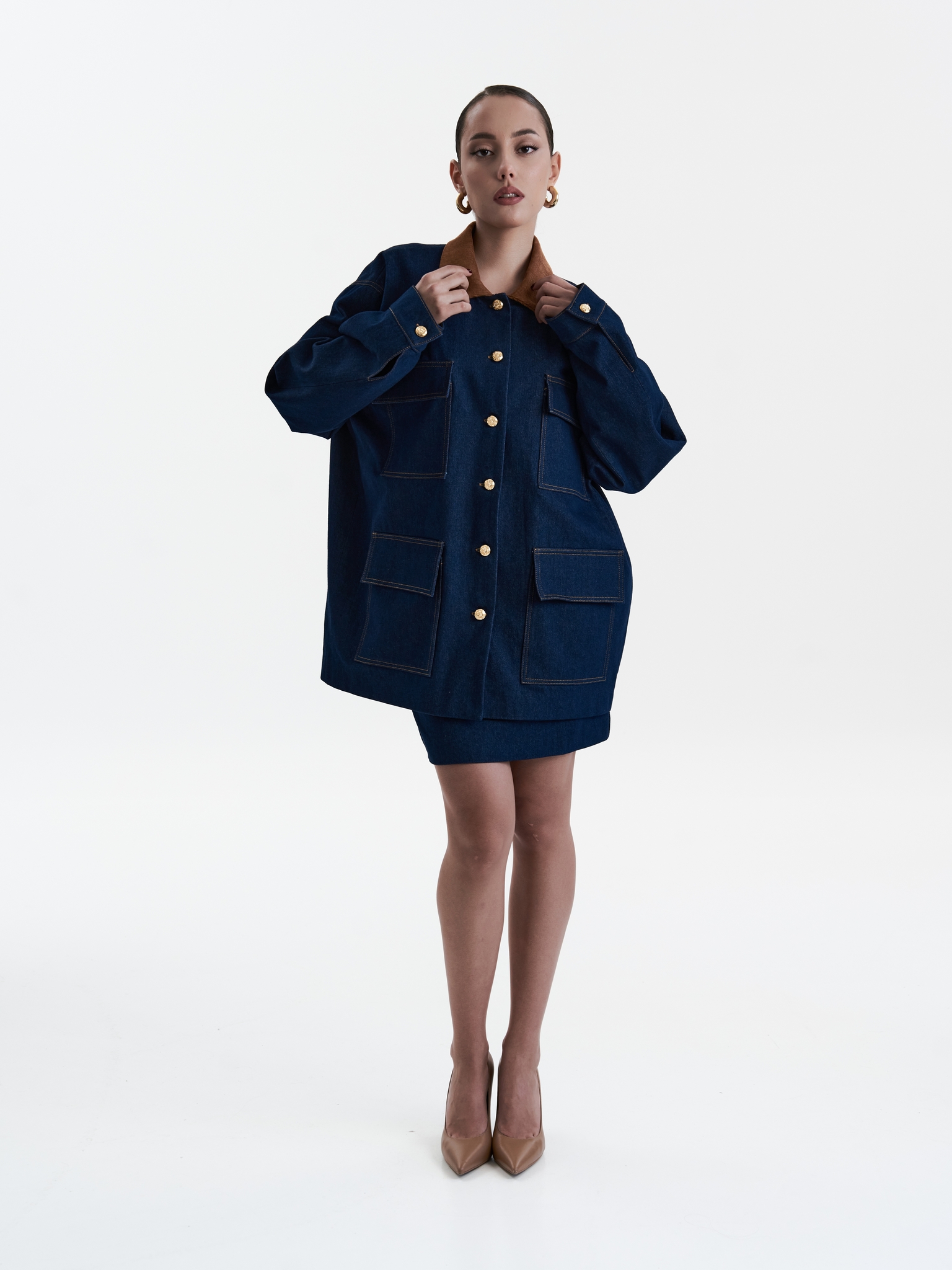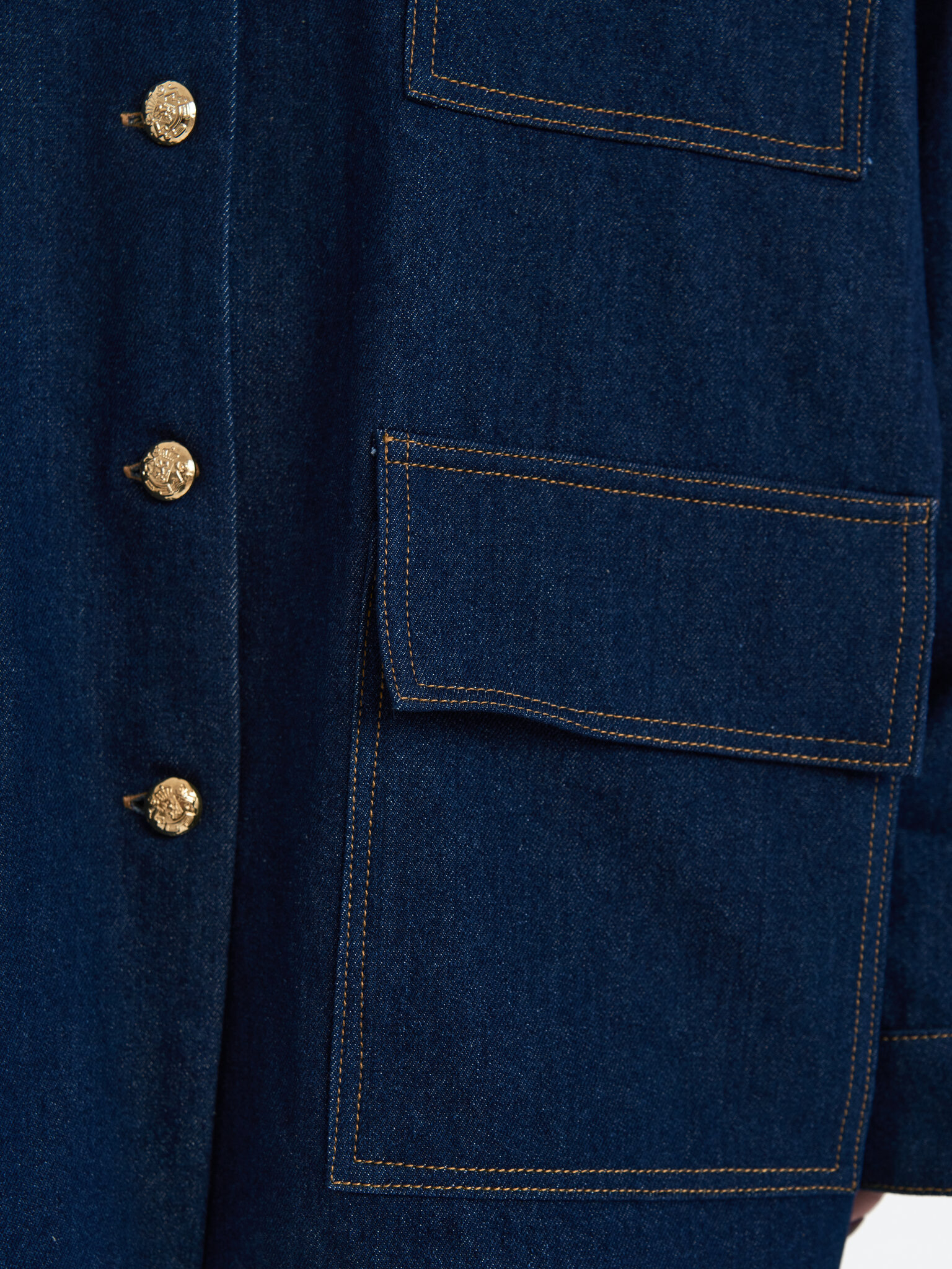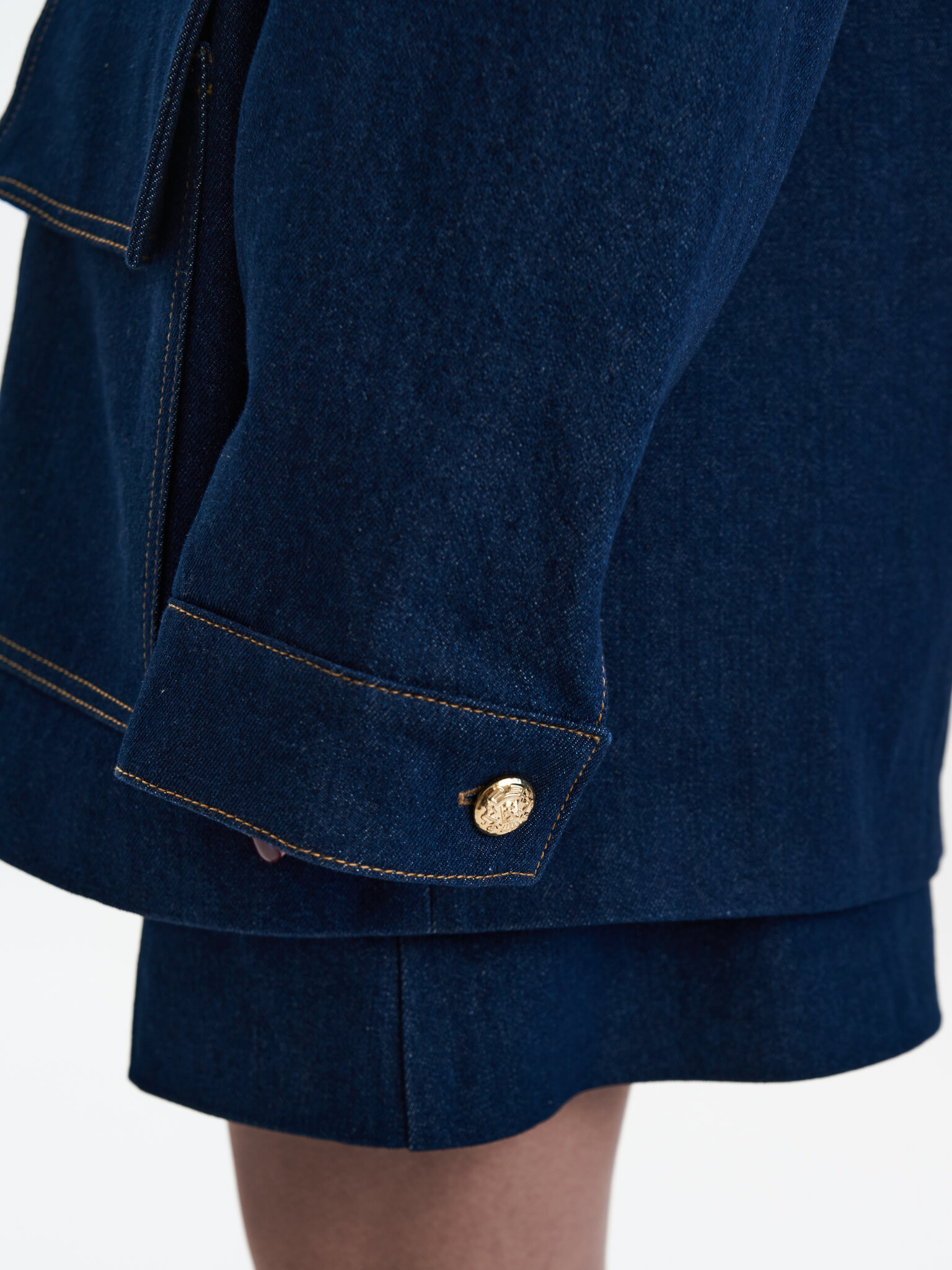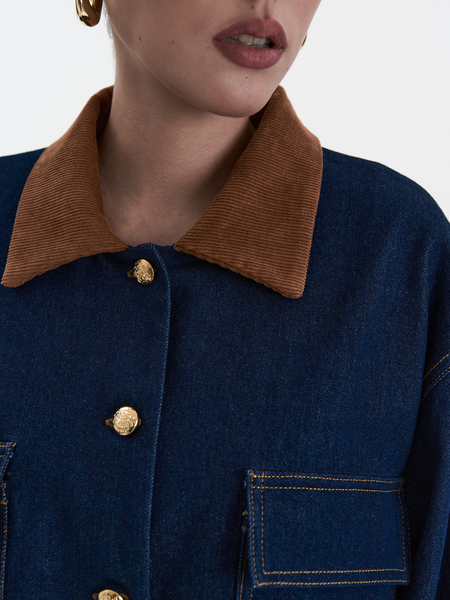 Куртка из темно-синего денима — классический и универсальный предмет гардероба, который отлично дополнит любой образ. Благодаря прочному материалу и аккуратному крою, она обеспечивает комфорт и долговечность. Стильный дизайн с золотыми деталями делает ее подходящей как для повседневных прогулок, так и для более casual-выходов. Идеально сочетается с джинсами, юбками или платьями, создавая элегантный и непринужденный образ на каждый день.