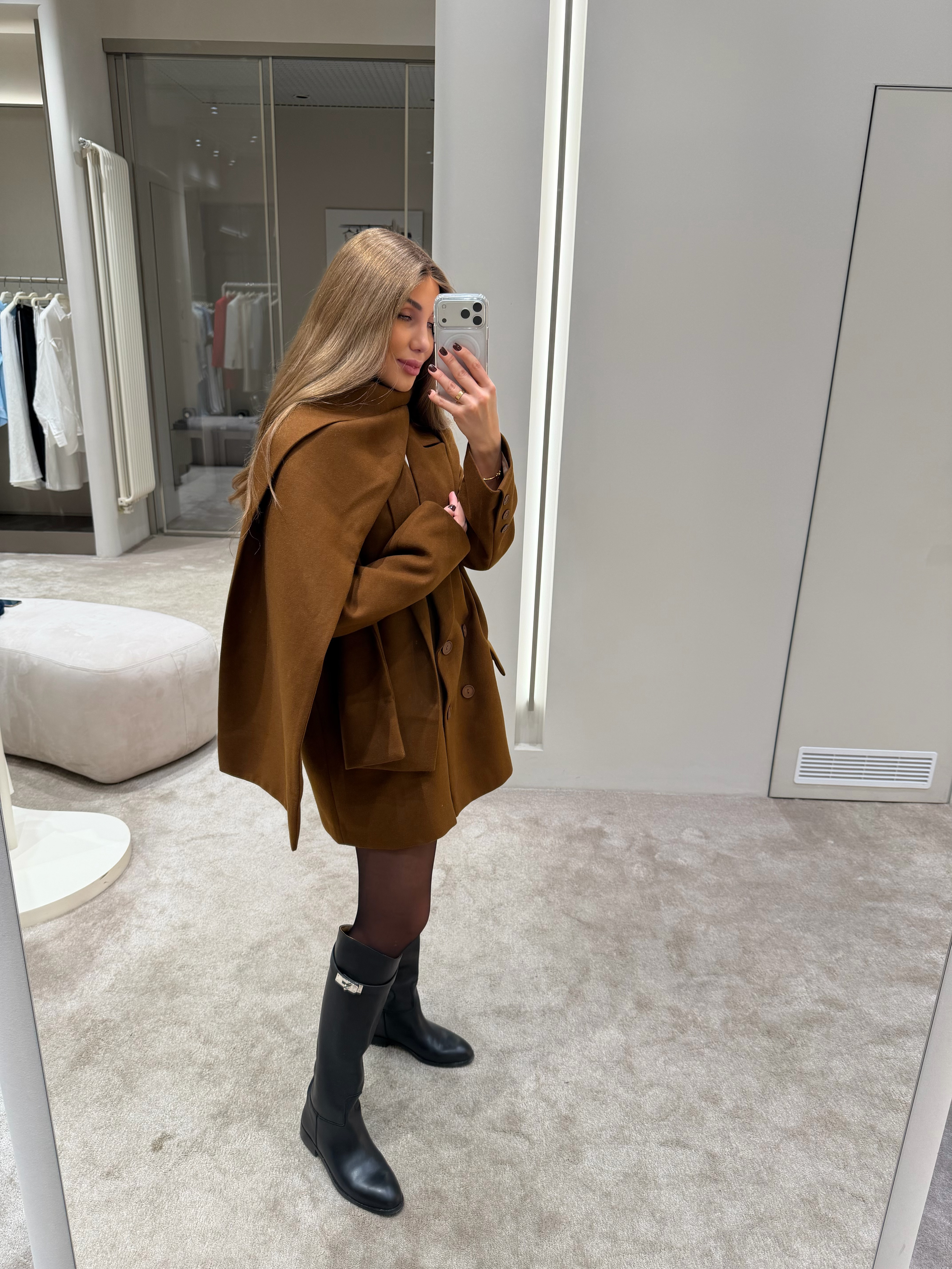 Комплект тройка включает в себя стильное пальто-пиджак, элегантный шарф и юбку мини, создающие гармоничный образ в карамельном цвете. Укороченное пальто свободного кроя выполнено из мягкого, приятного на ощупь кашемира, Карамельный цвет придаёт образу нежность и утончённость. Шарф в тон пальто создает многослойный эффект и добавляет уют. Его плотная текстура делает шарф универсальным аксессуаром для холодной погоды. Этот комплект идеально подходит для осенне-зимнего сезона, сочетая в себе стиль, комфорт и тепло.