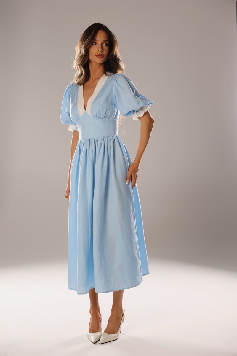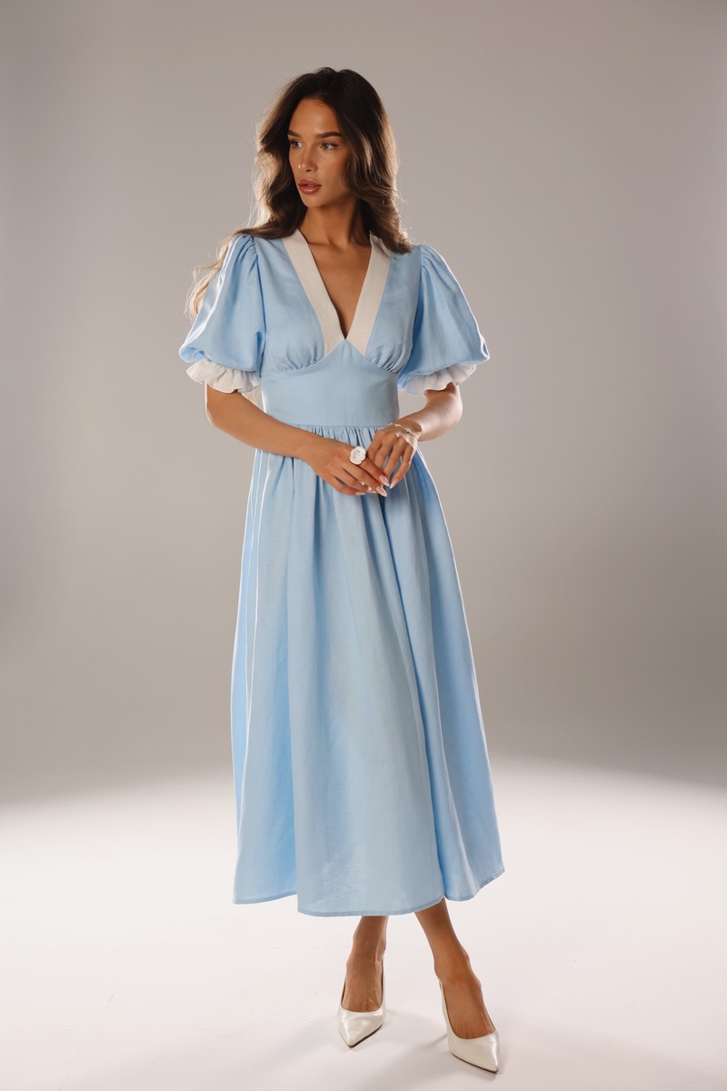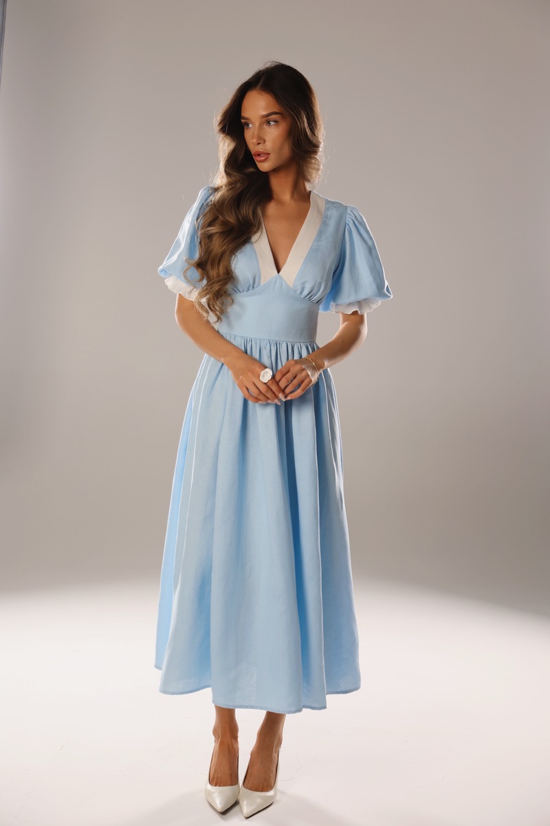 Платье "Ариэль" в нежном голубом оттенке — это идеальное сочетание лёгкости и природной элегантности. Сделанное из мягкой вискозы и льна, оно приятно на ощупь и отлично дышит, создавая ощущение комфорта даже в теплую погоду. Свободный силуэт с изящным кроем подчеркнет вашу женственность и добавит образу свежести. Это платье идеально подойдет для прогулок, отдыха на природе или летних вечеров, даря вам ощущение легкости и стиля.