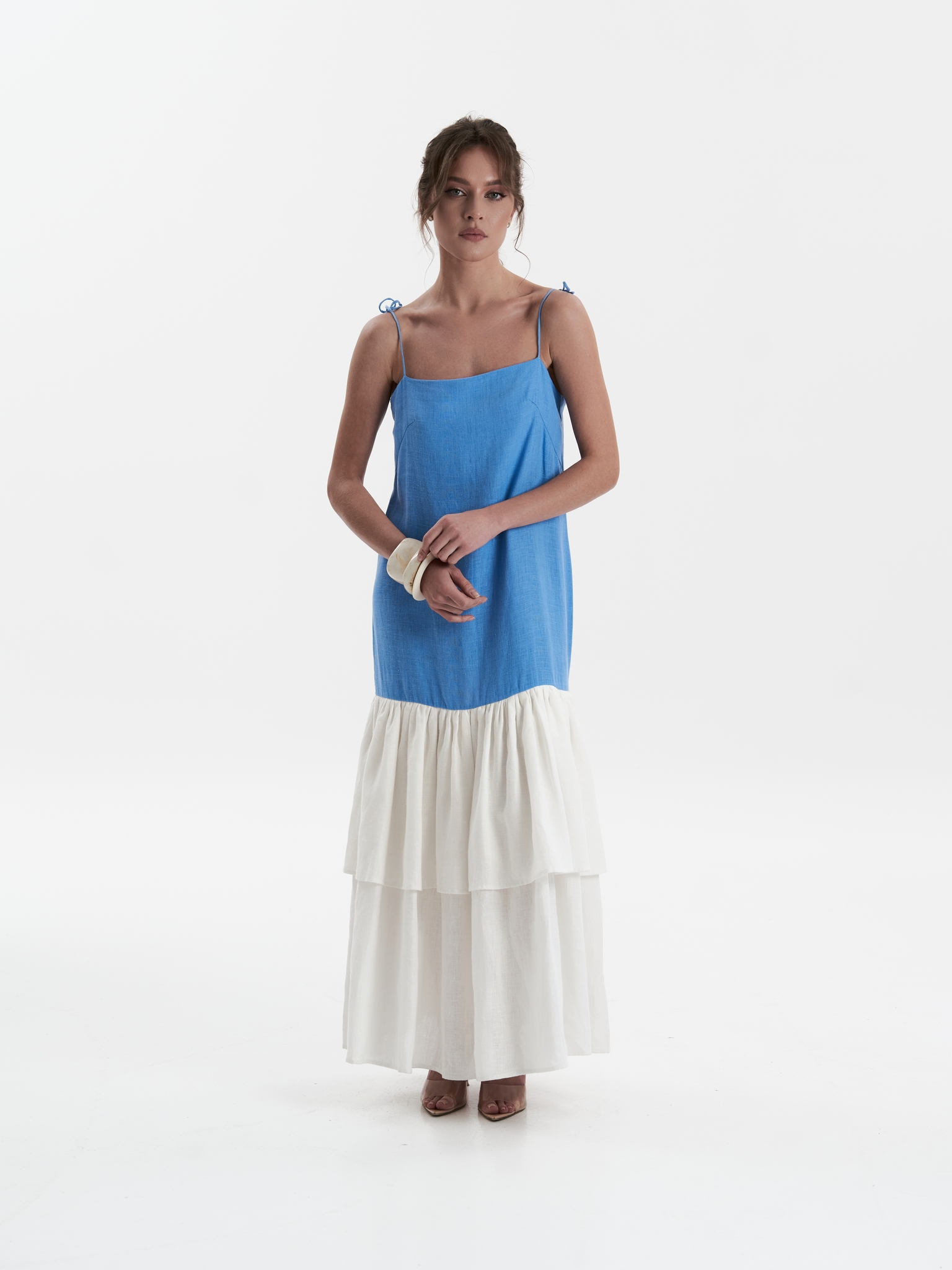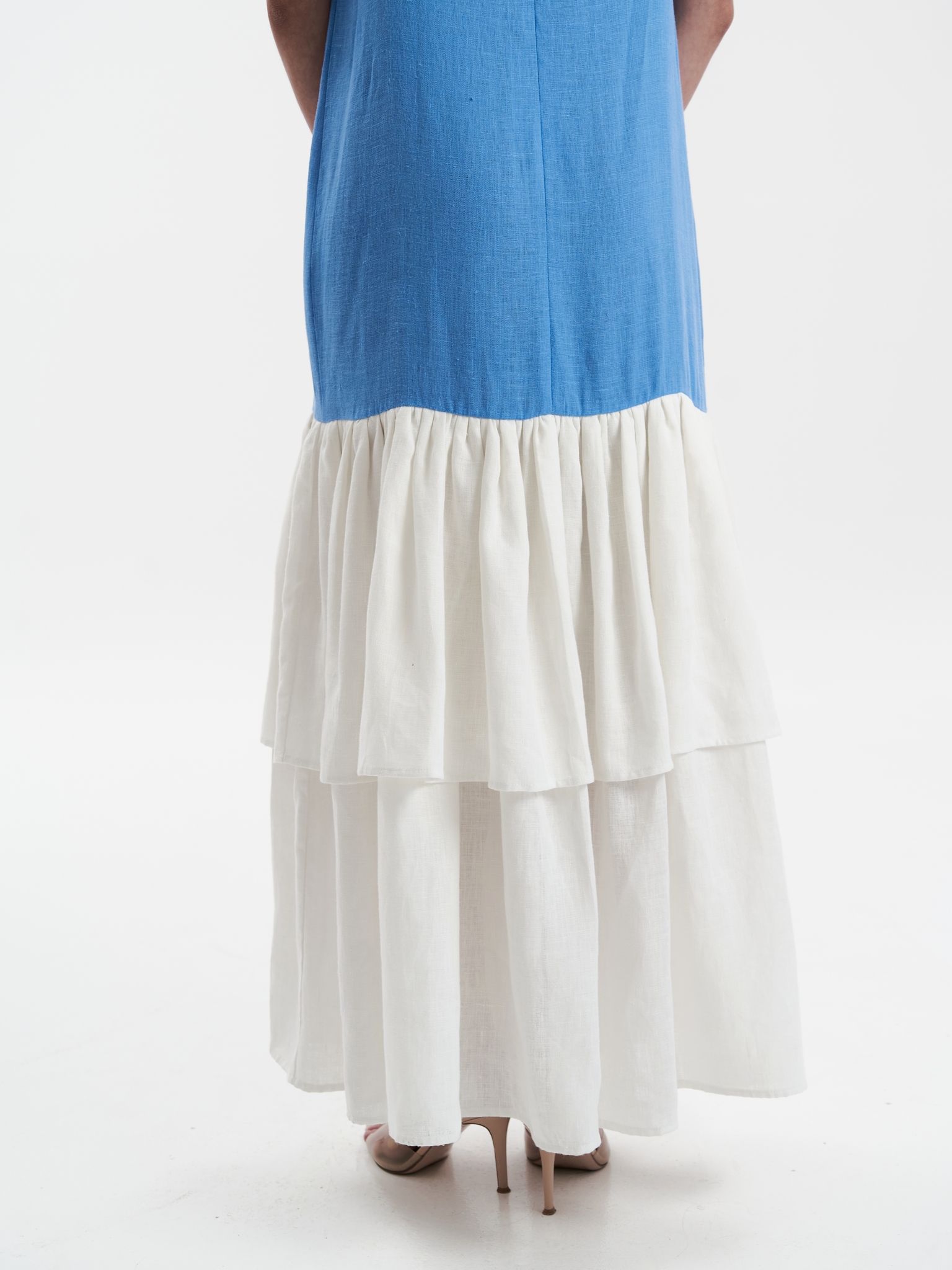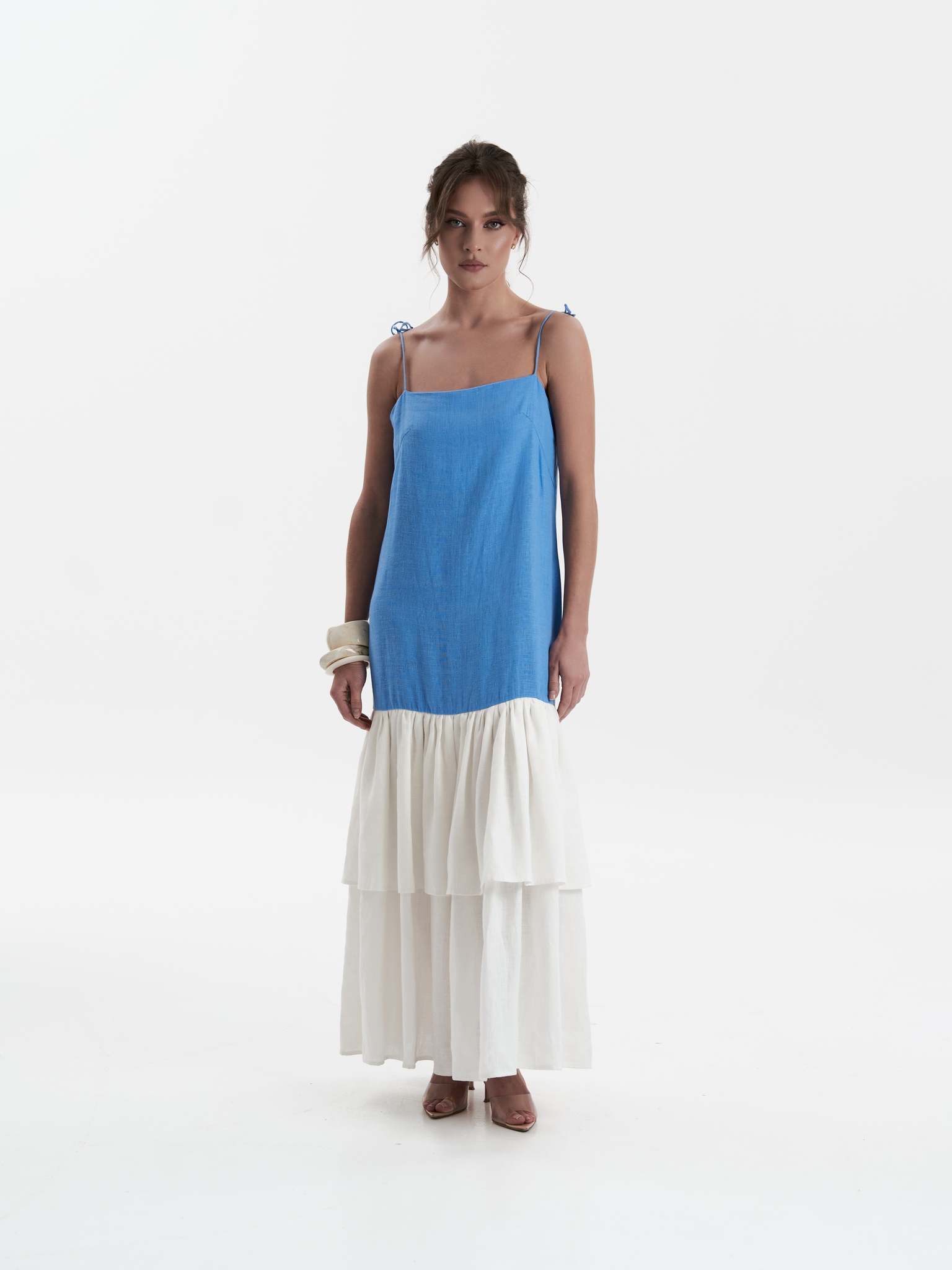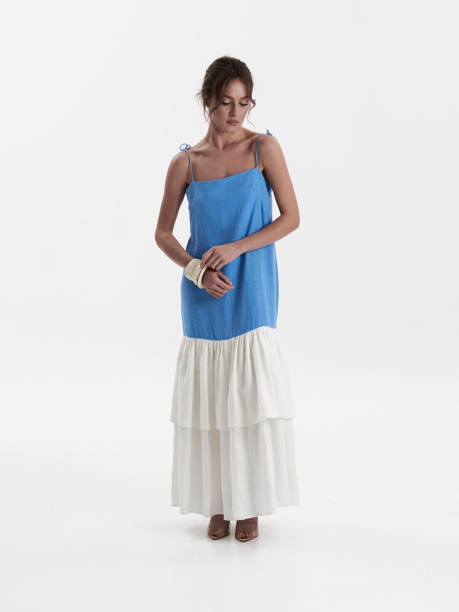 Великолепное голубое платье с белыми воланами "Круиз" выполнено в свободном, но стильном крое, который подчеркивает фигуру и дарит комфорт. Нежный голубой оттенок напоминает о безоблачном небе и спокойном море, а белые детали придают платью свежесть и яркость. Легкость материала позволяет коже дышать, а вам — наслаждаться каждым мгновением. Платье «Круиз» легко комбинируется с сандалиями для повседневного образа или изящными босоножками для вечернего выхода.