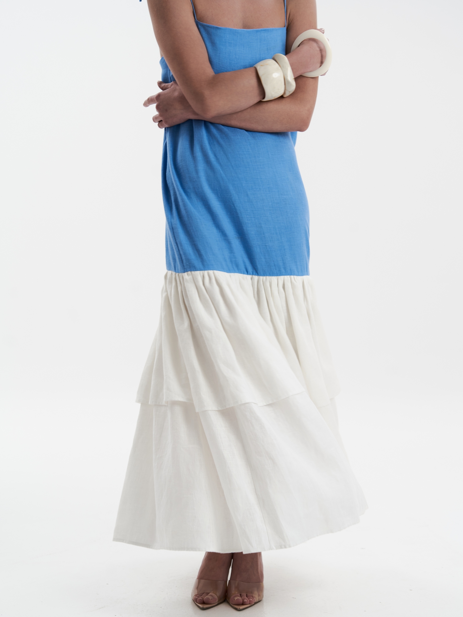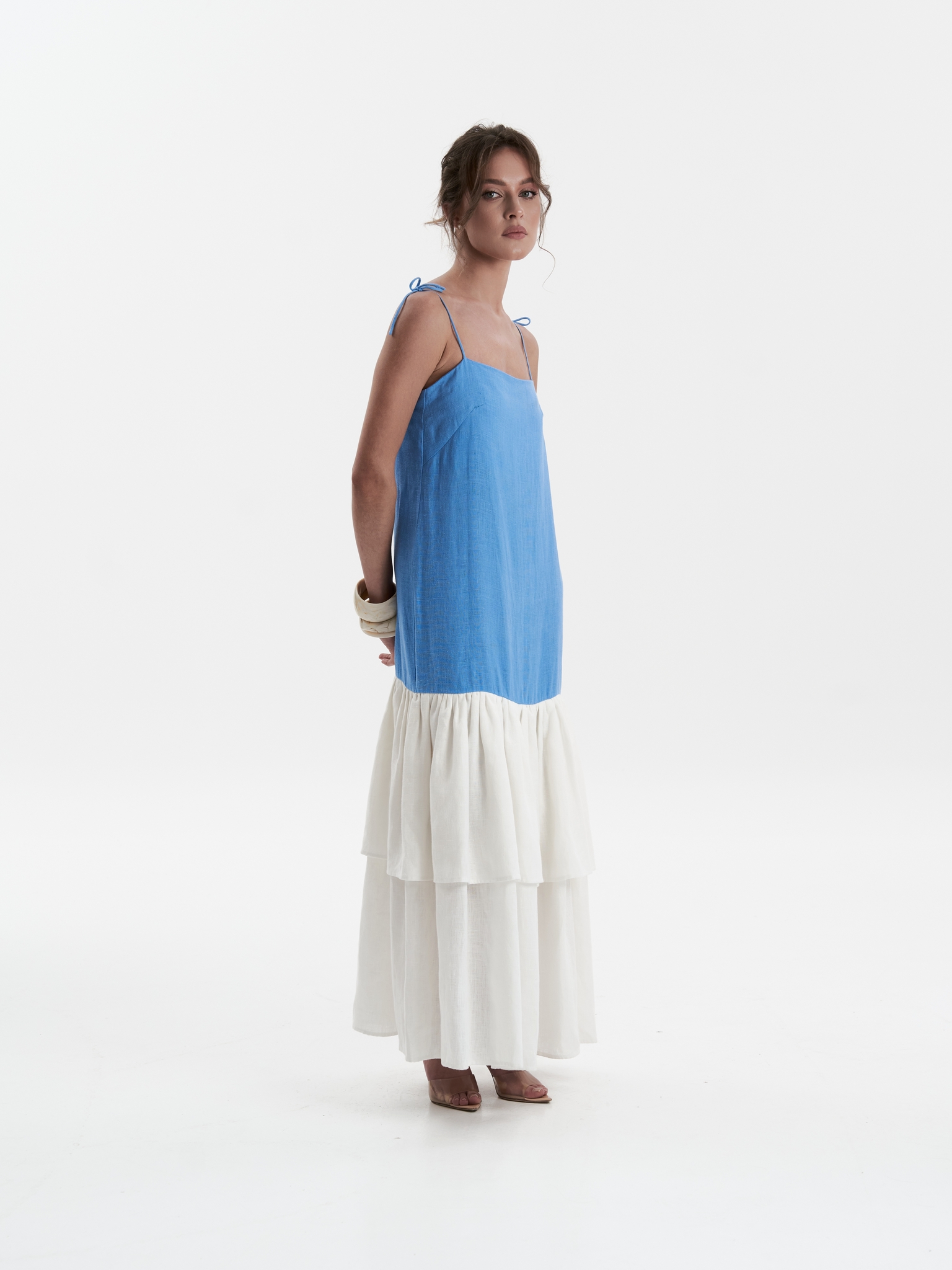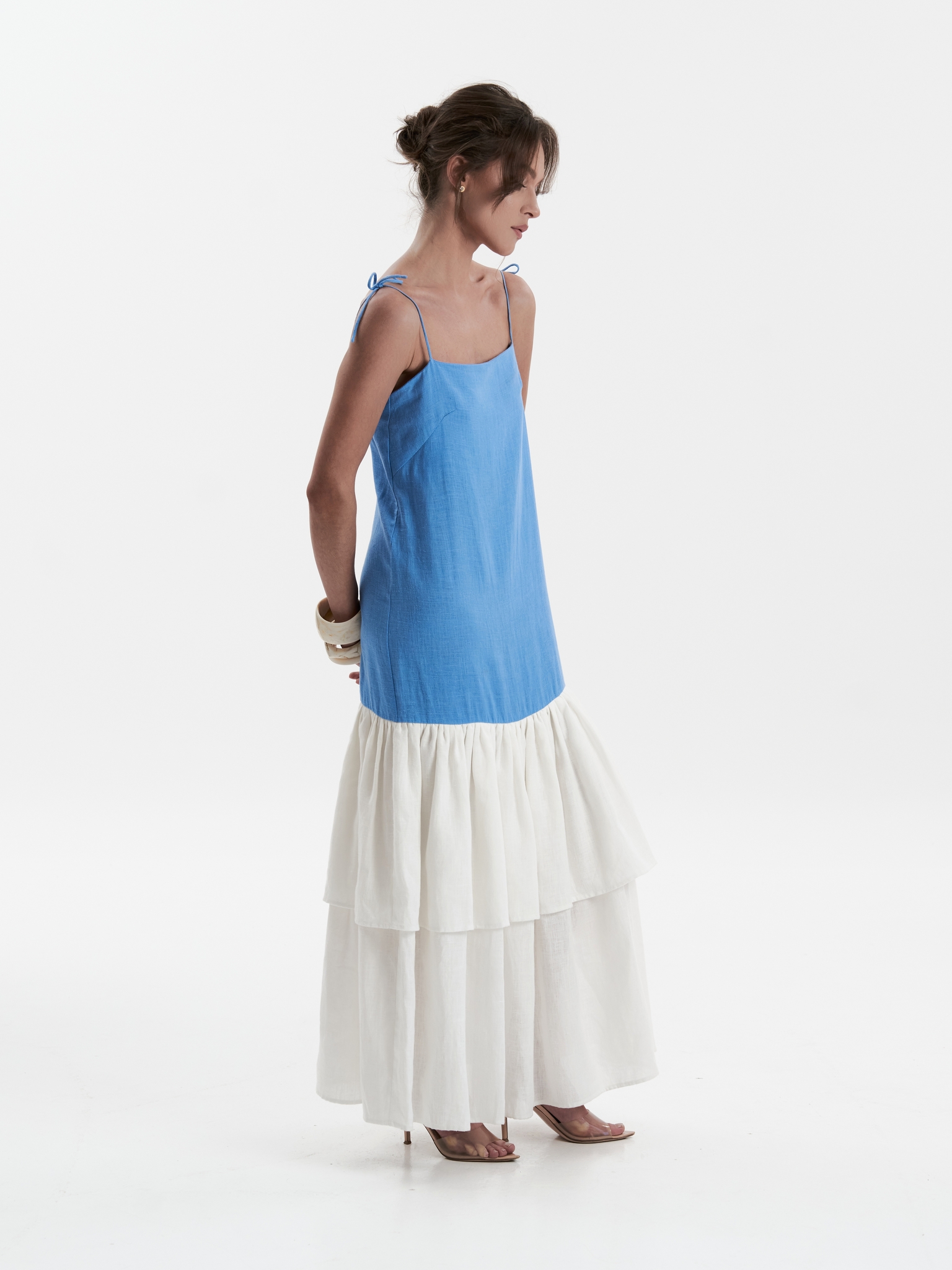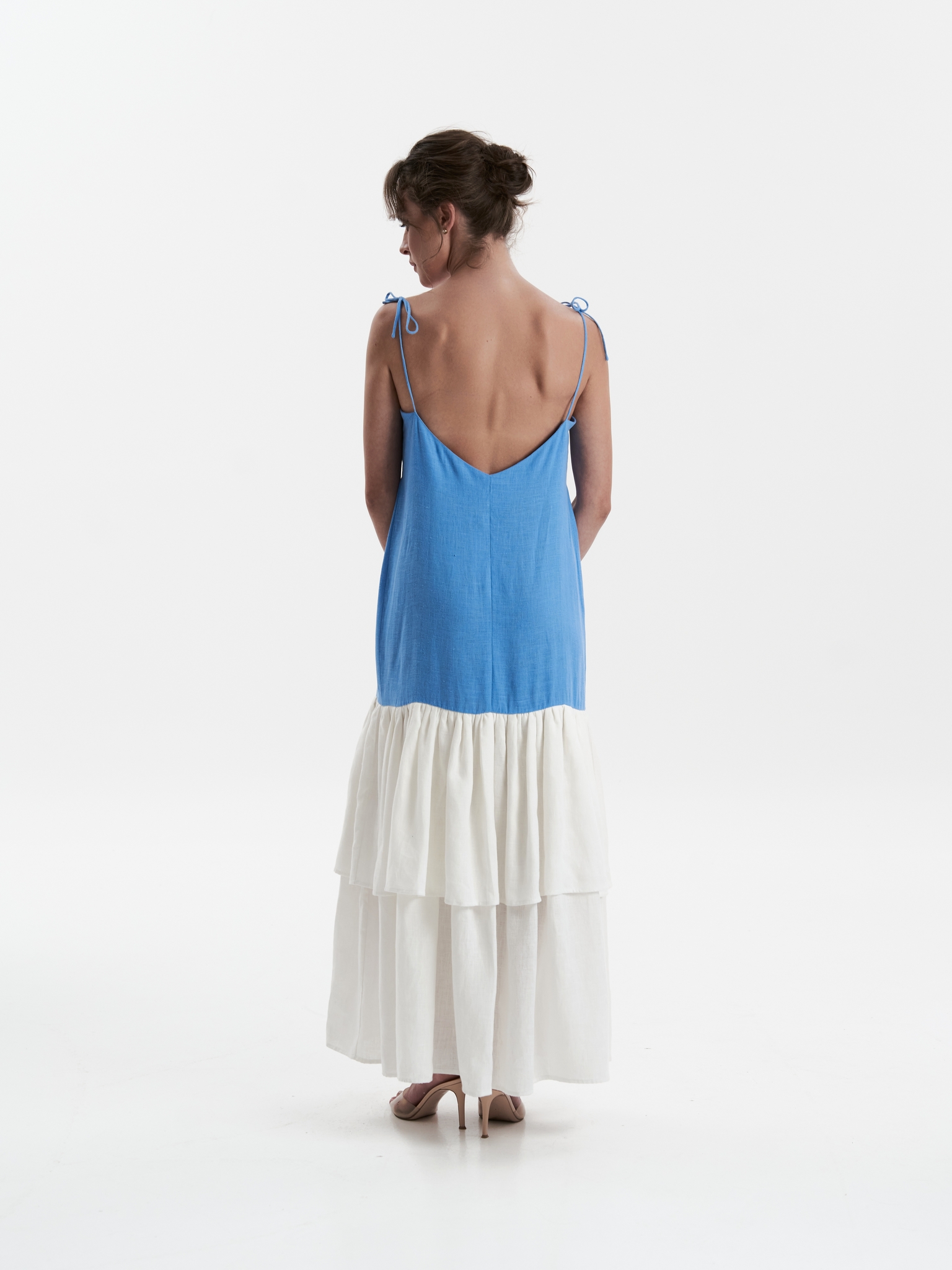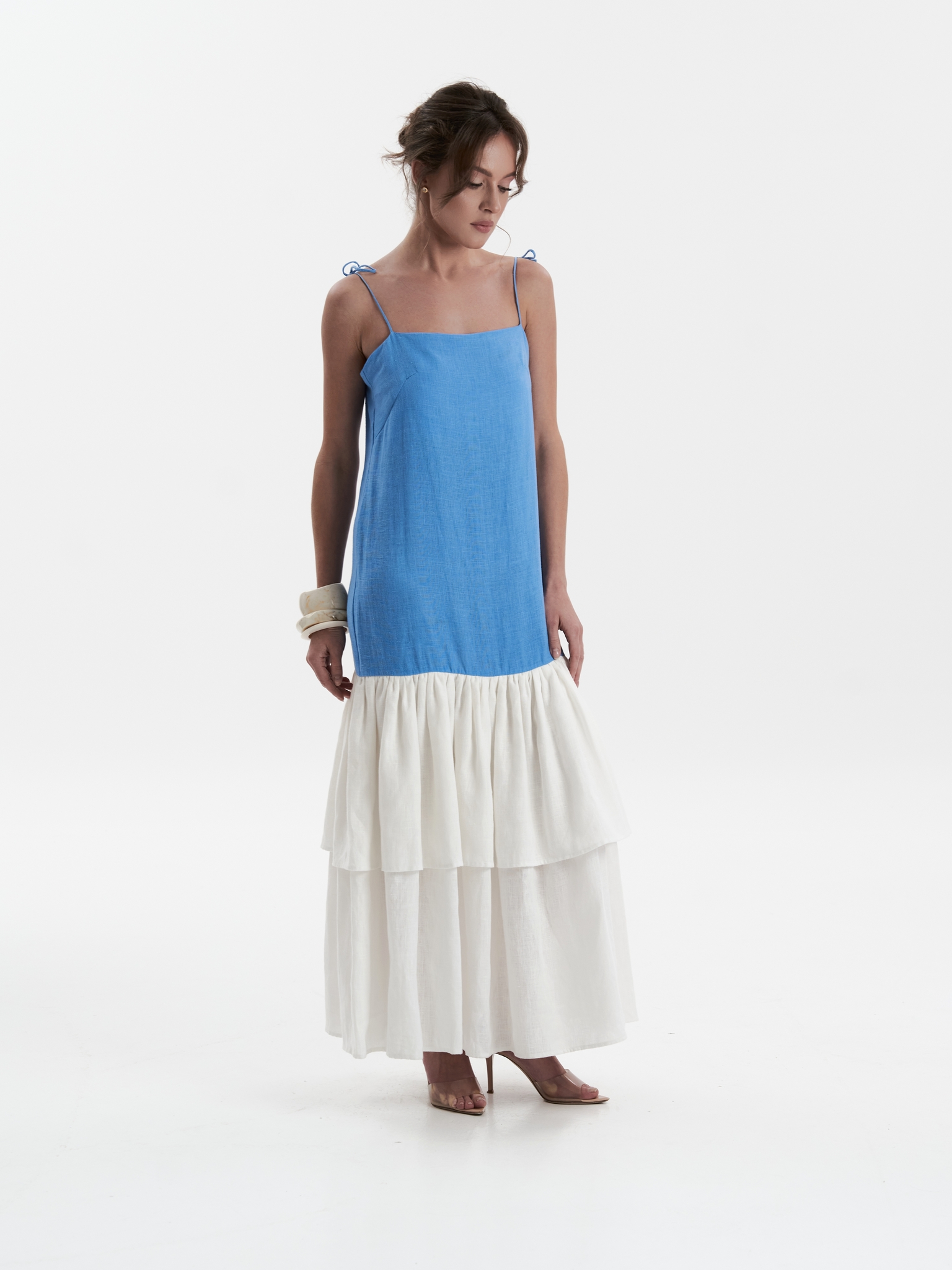Великолепное голубое платье с белыми воланами "Круиз" выполнено в свободном, но стильном крое, который подчеркивает фигуру и дарит комфорт. Нежный голубой оттенок напоминает о безоблачном небе и спокойном море, а белые детали придают платью свежесть и яркость. Легкость материала позволяет коже дышать, а вам — наслаждаться каждым мгновением. Платье «Круиз» легко комбинируется с сандалиями для повседневного образа или изящными босоножками для вечернего выхода.
