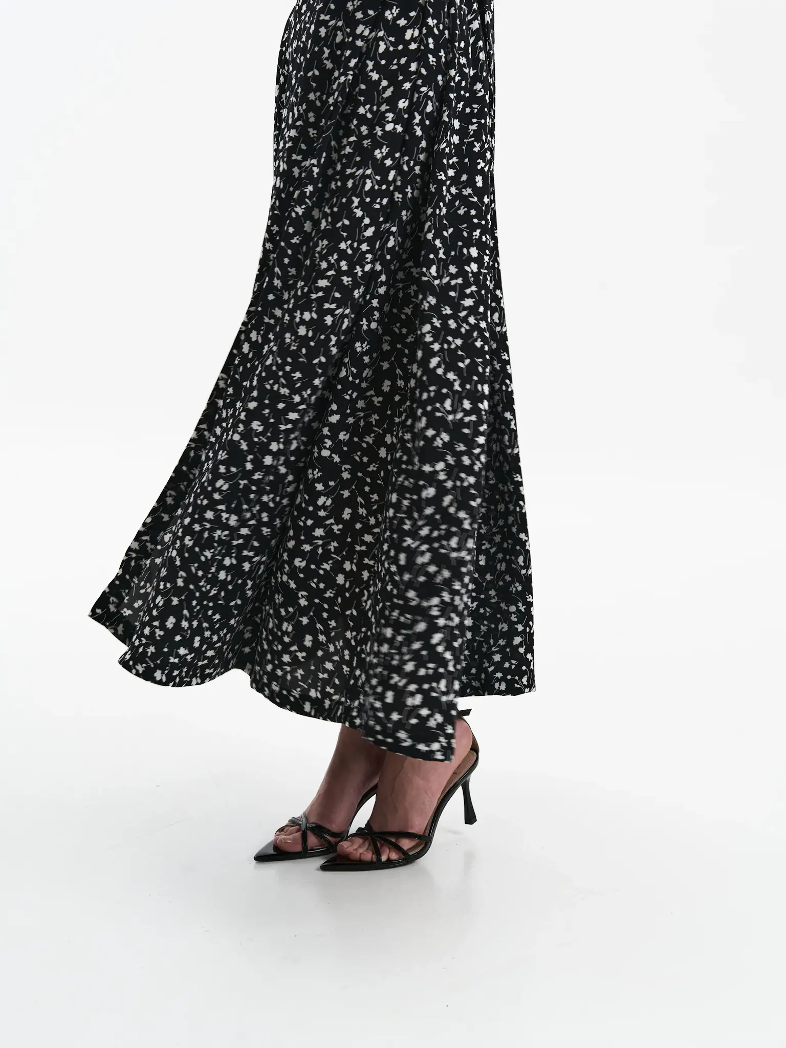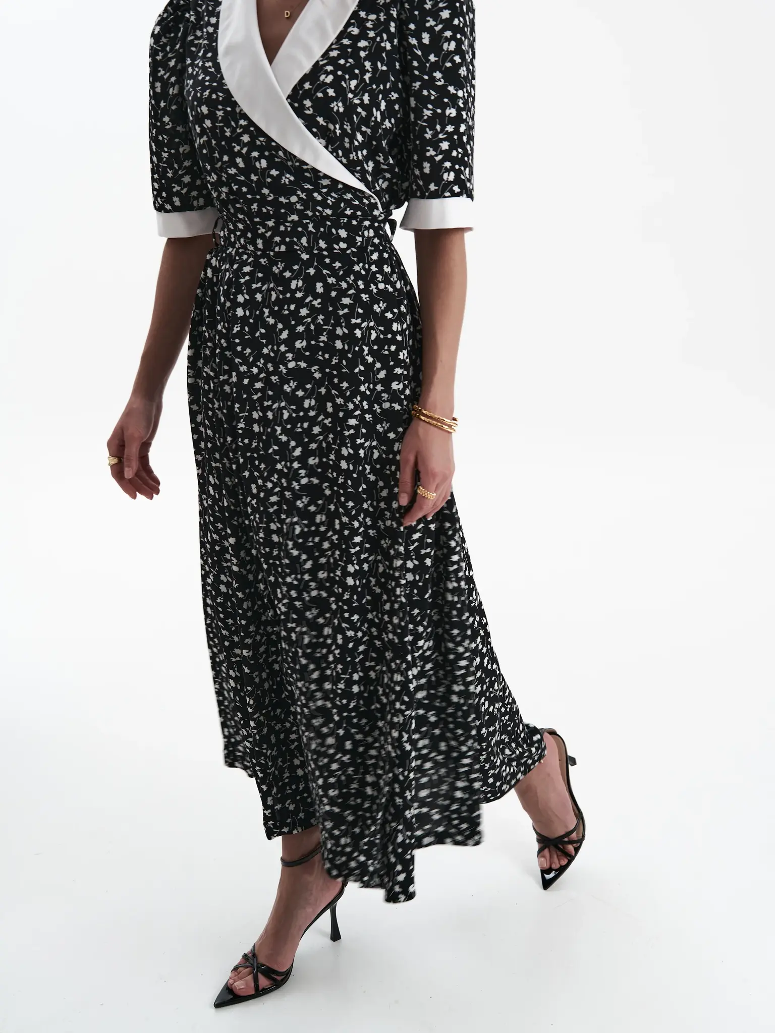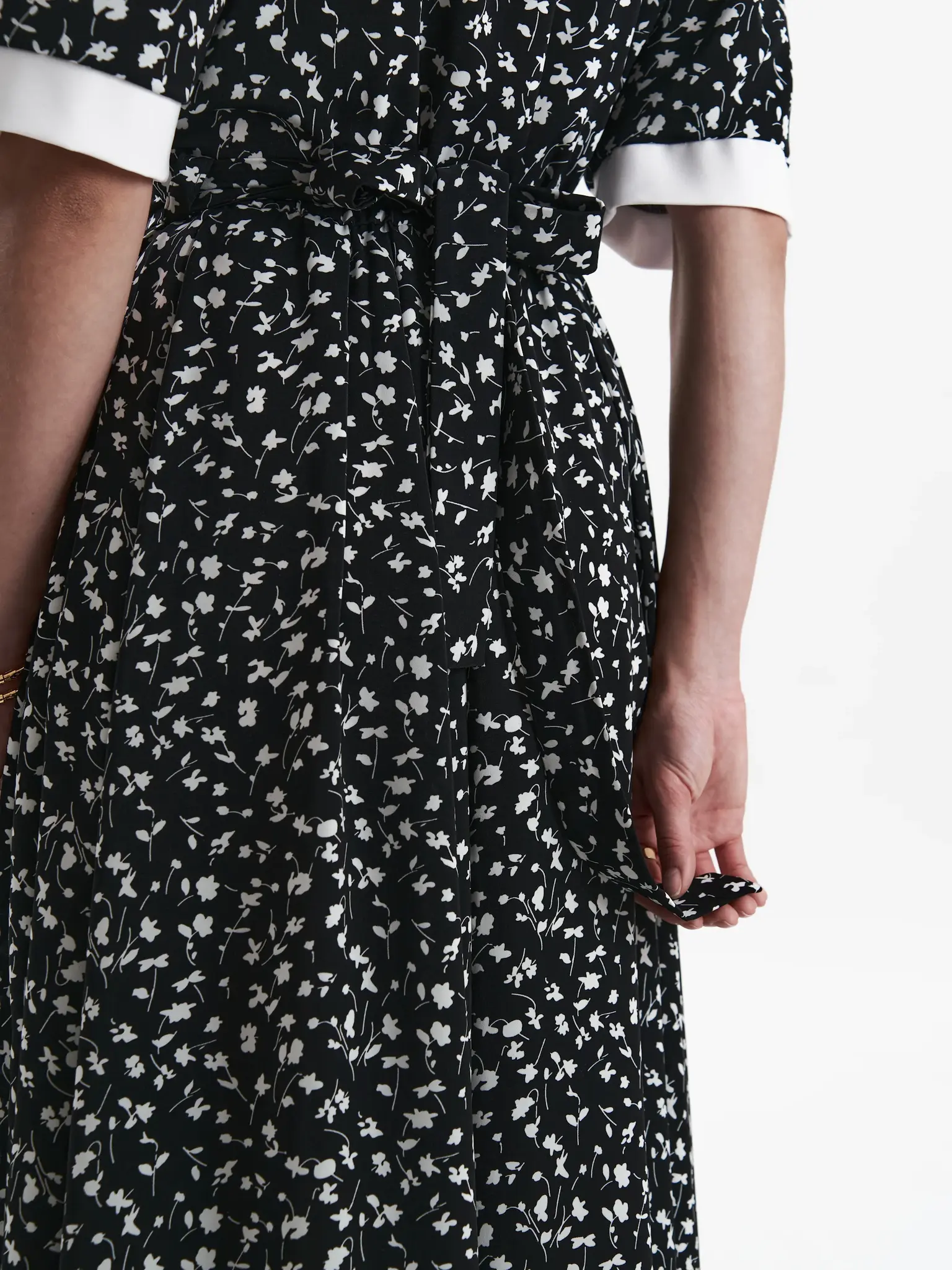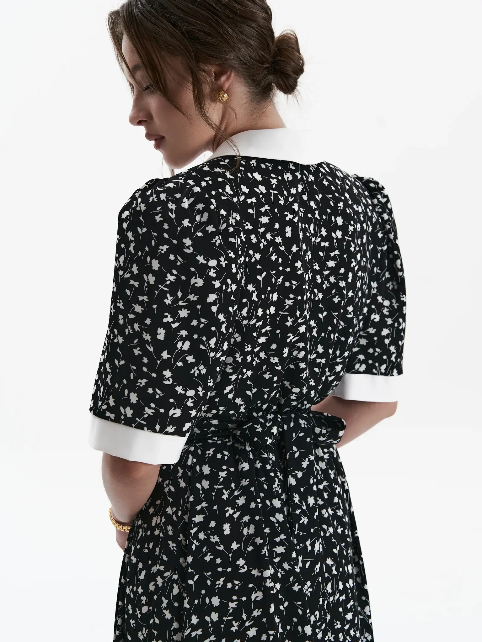 Изысканное платье в черном цвете станет настоящим акцентом в Вашем гардеробе. Украсившееся романтичным белым цветочным принтом, оно придаёт образу легкость и свежесть. Элегантный белый воротник добавляет нотку классики и утонченности, подчеркивая линию шеи. Легкий и приятный к телу материал обеспечивает комфорт в течение всего дня, а свободный крой позволяет легко сочетать его с различными аксессуарами. Создайте свой уникальный стиль с этим платьем, которое подчеркнет Вашу индивидуальность и женственность.