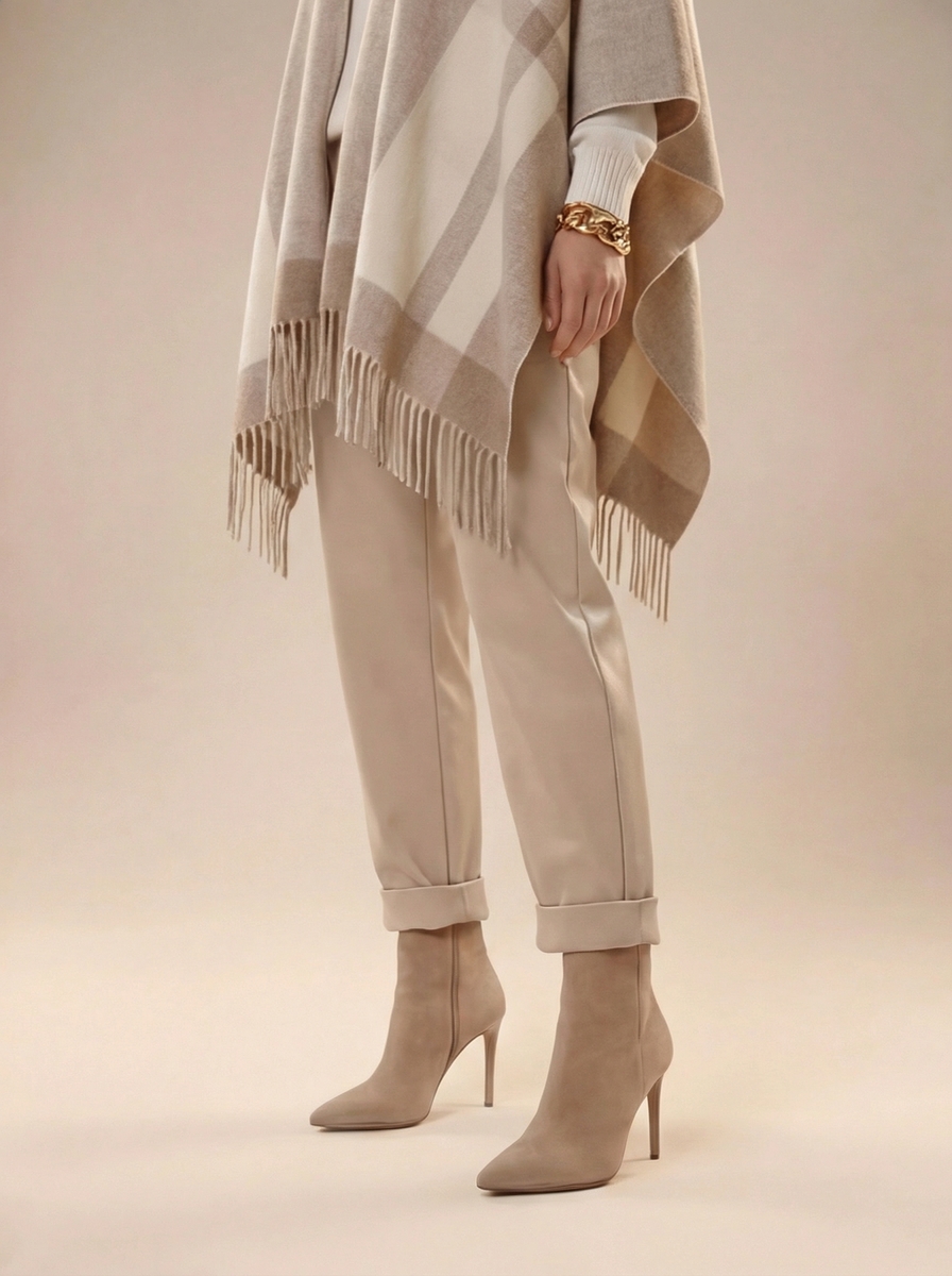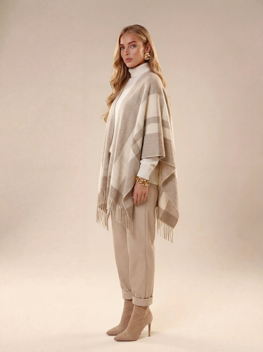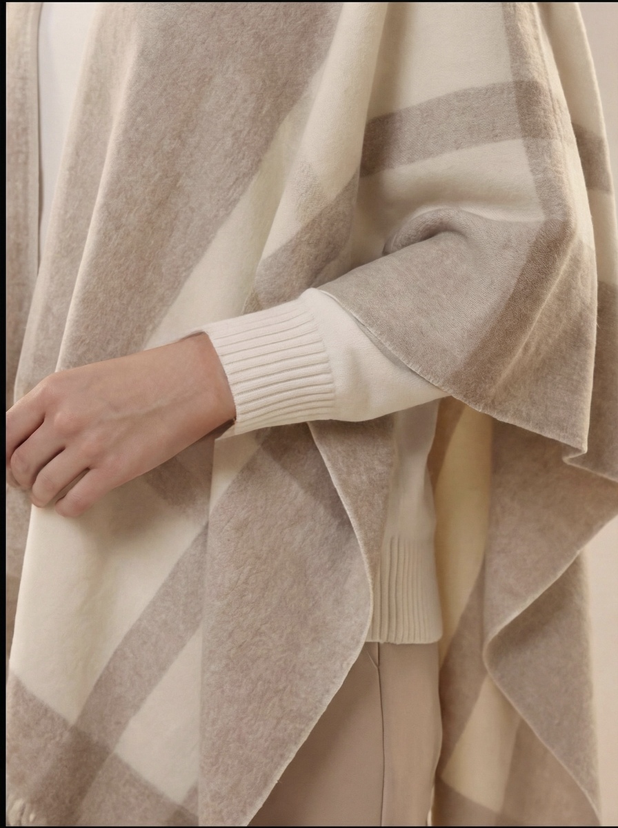 Это роскошное пончо в бежевом цвете из мягкого кашемира добавит вашему образу утонченности и тепла. Идеально подходит для прохладных вечеров или стильных прогулок по городу. Его изысканный дизайн позволяет носить его поверх чего-то или как самостоятельный элемент наряда. Такое пончо станет элегантным дополнением к любой люксовой одежде, подчеркивая вашу индивидуальность и статус.