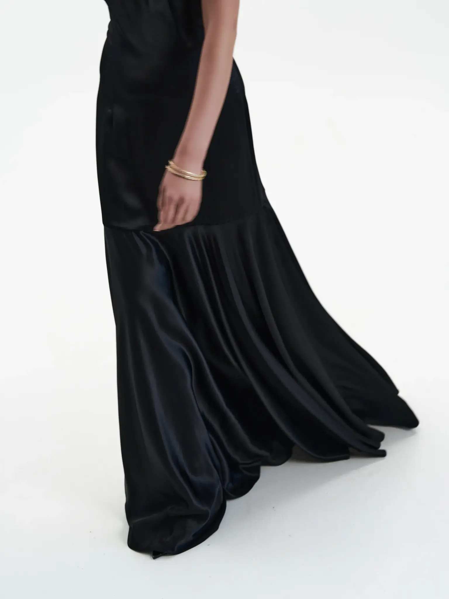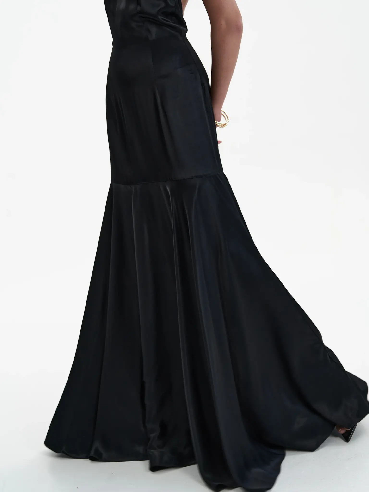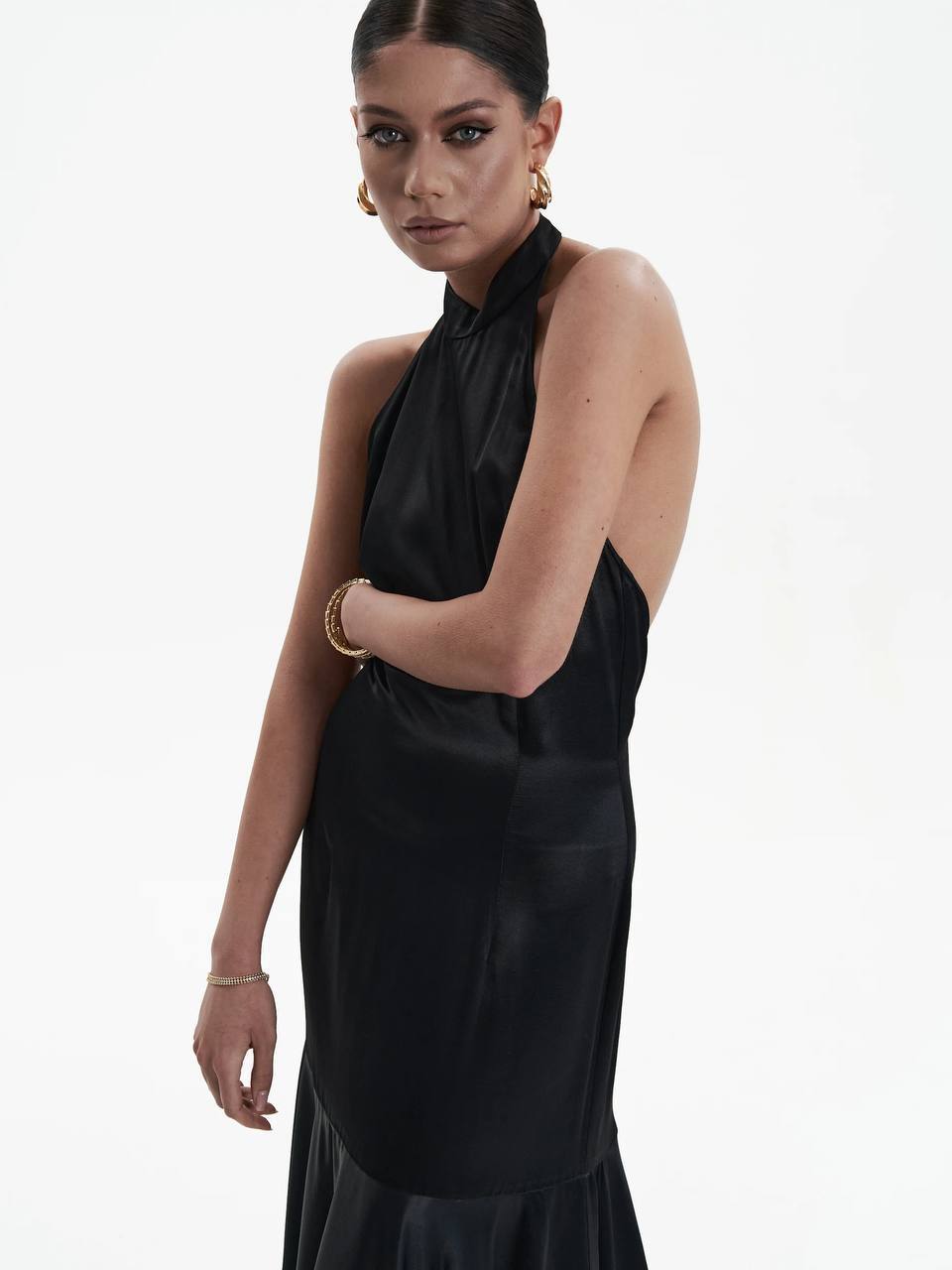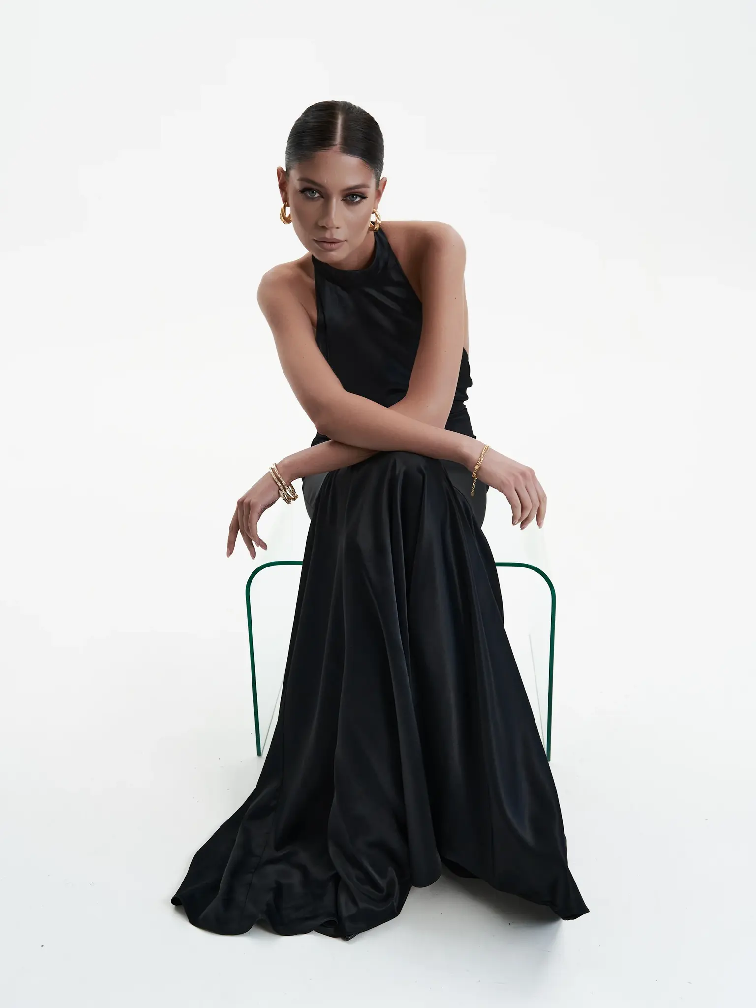 Силуэтное, женственное платье из вискозы с акцентным низом и открытой спиной. Данное платье станет ярким эффектным элементом твоего вечернего и дневного гардероба! Все будет зависеть только от твоего настроения и обуви!Босоножки или лодочки придадут к образу в роскошном платье вечерний шик, а минималистичные, легкие сандали помогут превратить образ в повседневный и стильный!