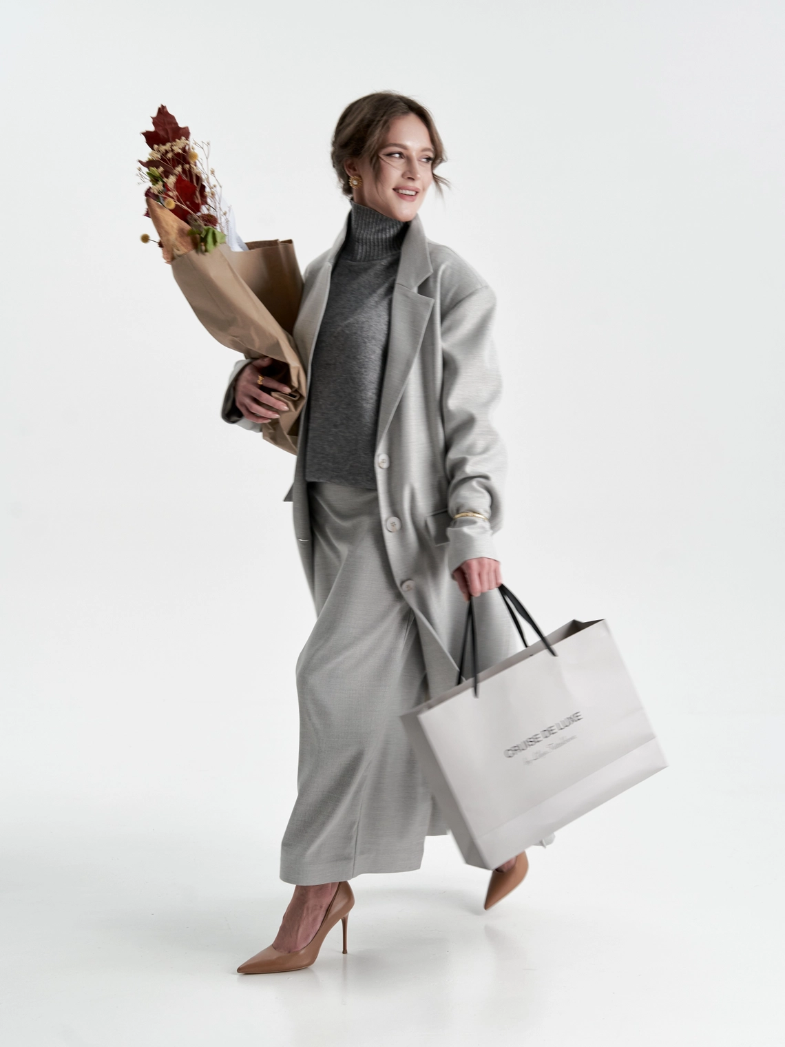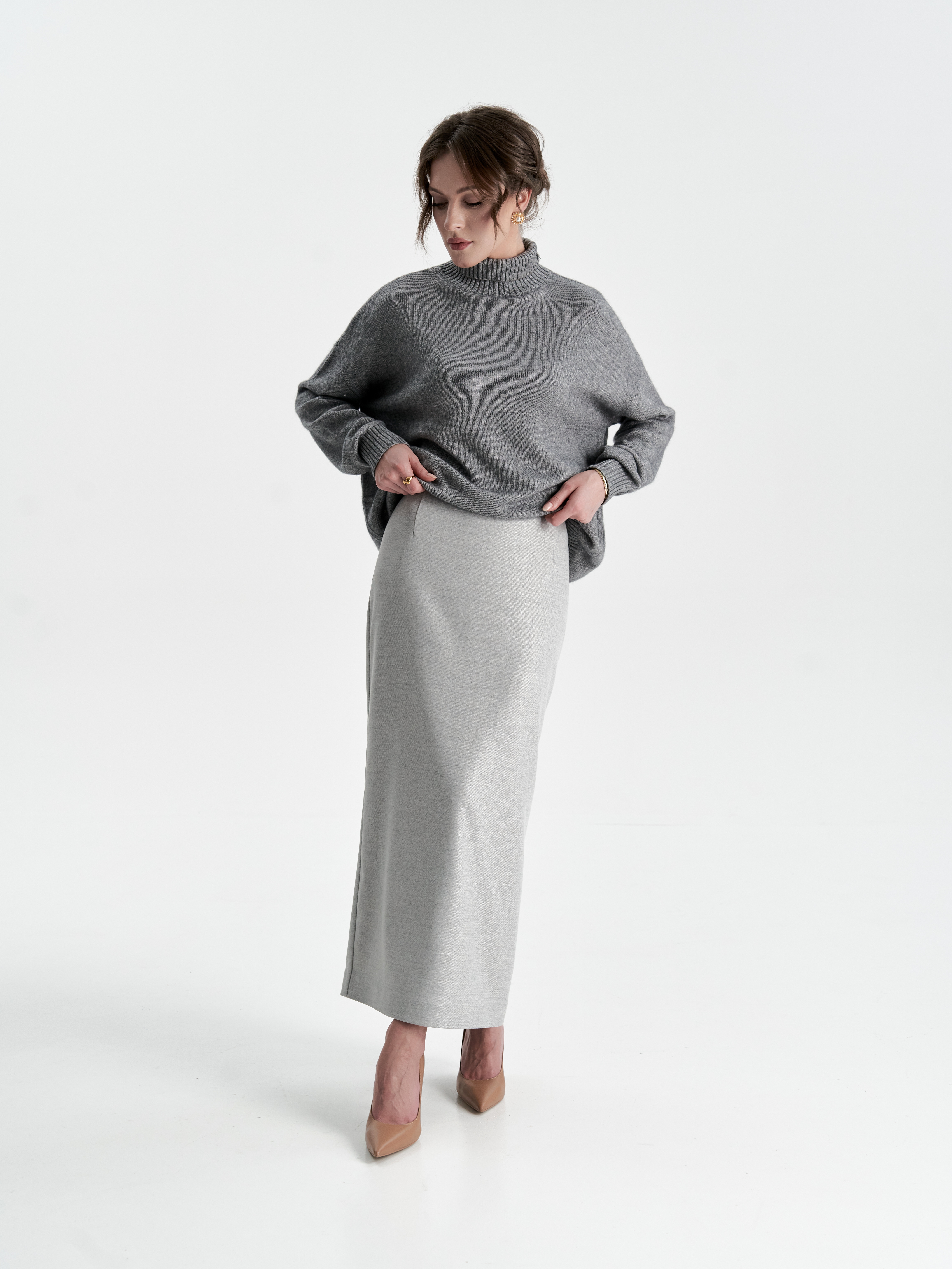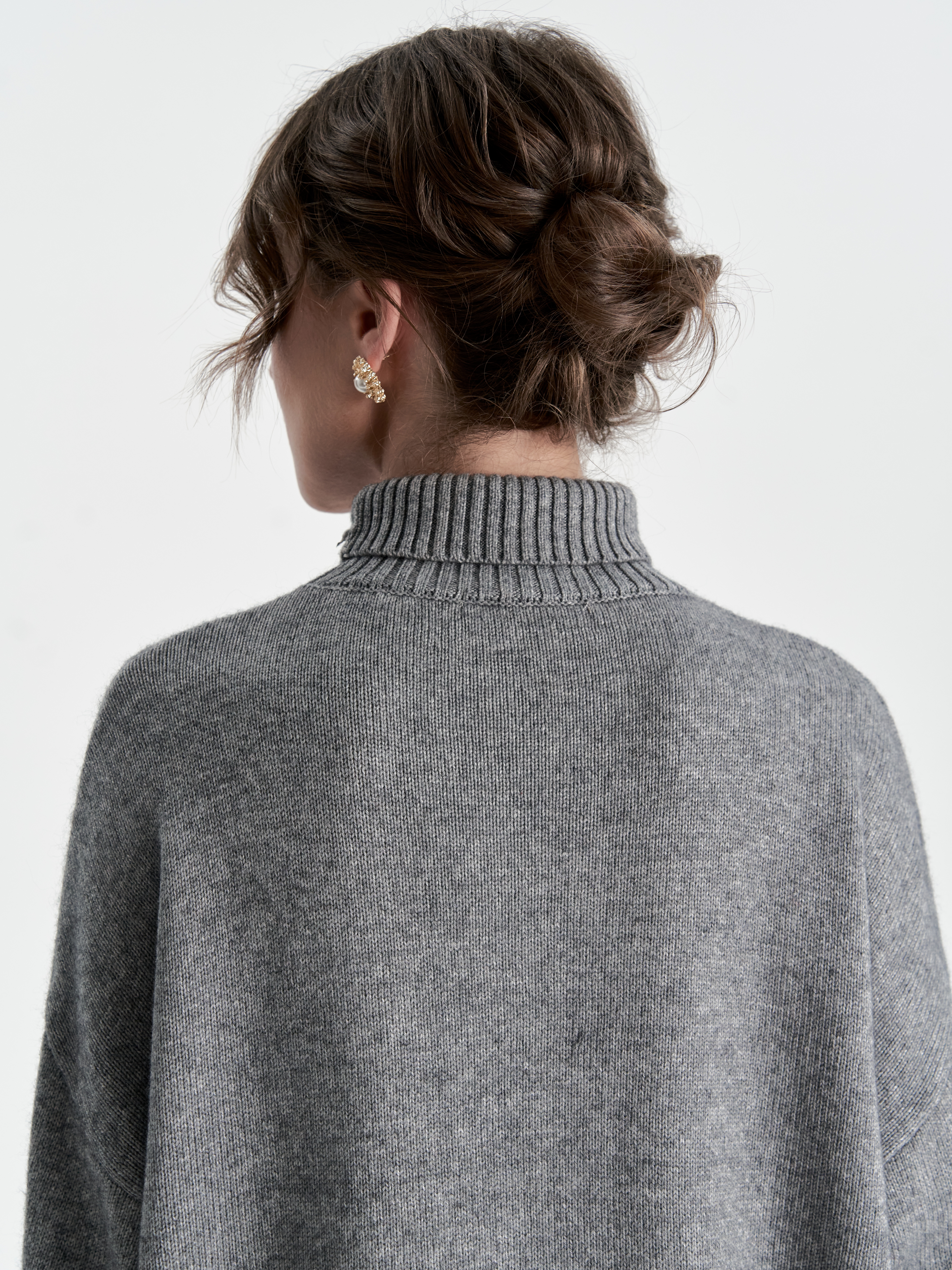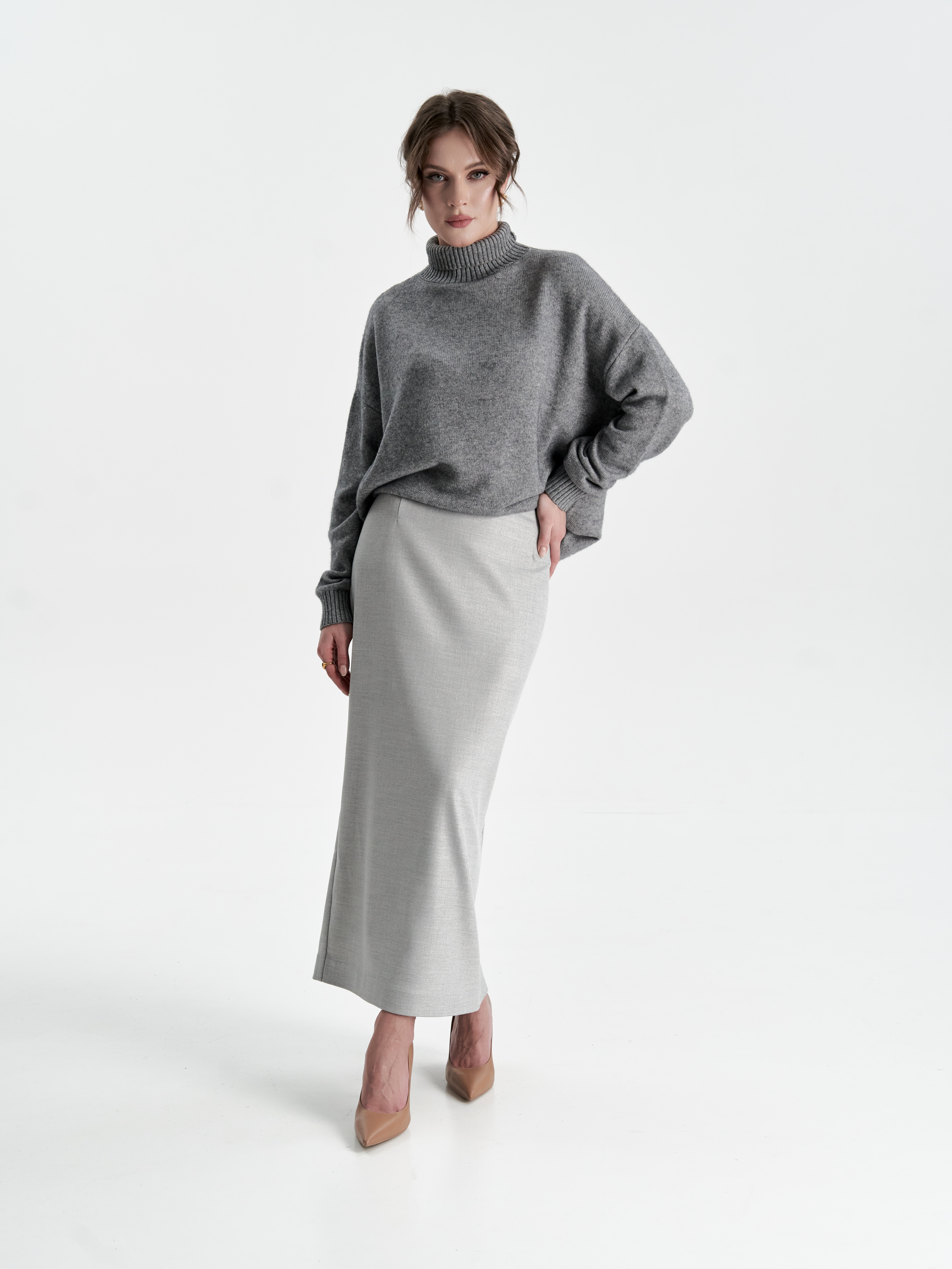 Свитер из мериносовой шерсти и кашемира представлен в универсальном сером цвете. Мягкая и приятная к телу ткань идеальна для прохладной погоды, позволяя сохранять тепло и комфорт в течение всего дня. Модель имеет свободный крой, что добавляет уюта и делает её отличным выбором для стильных повседневных образов. Высокий воротник, эластичные манжеты и широкий нижний край обеспечивают прекрасную посадку и защищают от ветра. Такой свитер прекрасно сочетается с юбками и брюками, подчеркивая элегантность и утонченность вашего стиля.
