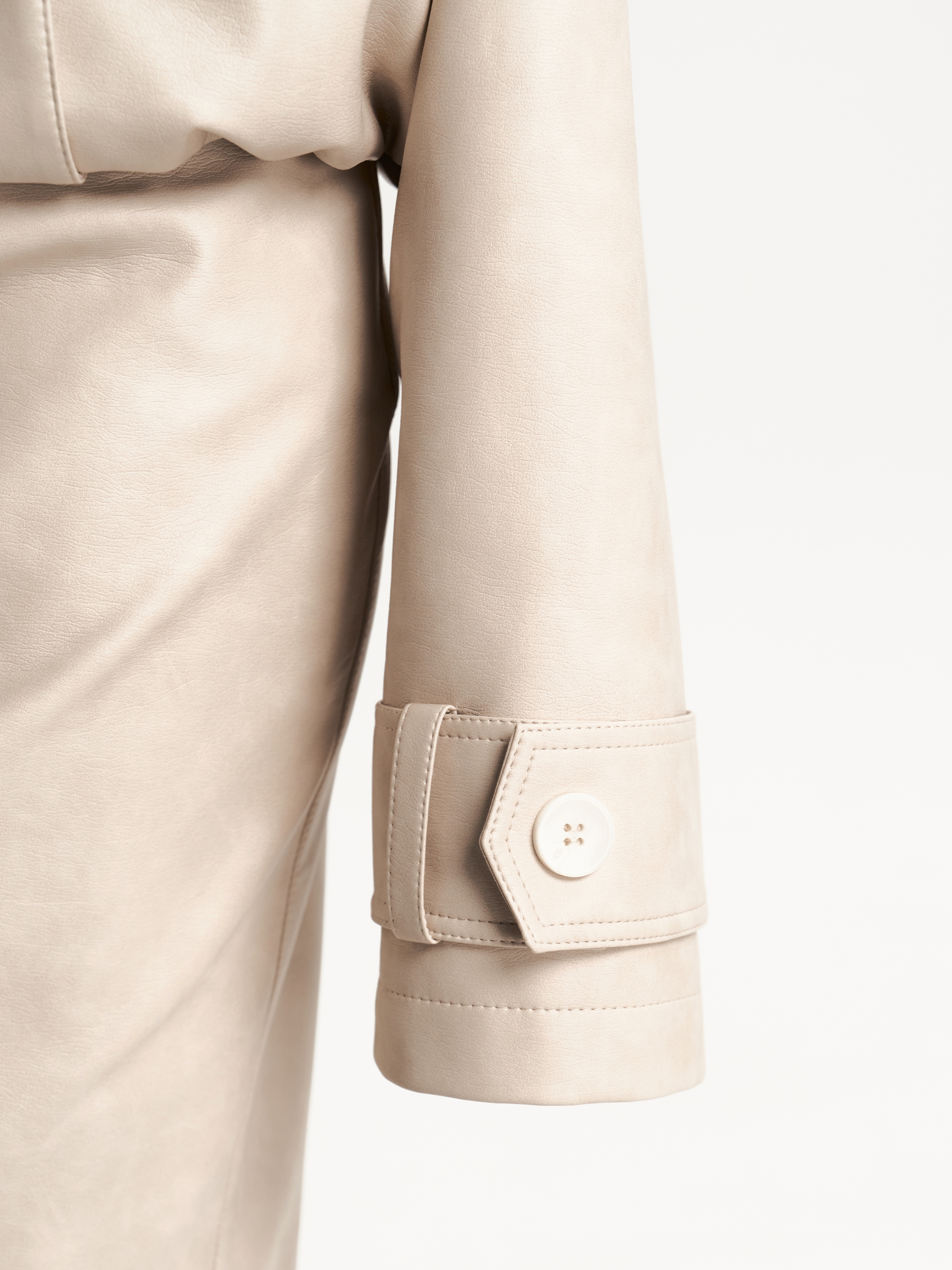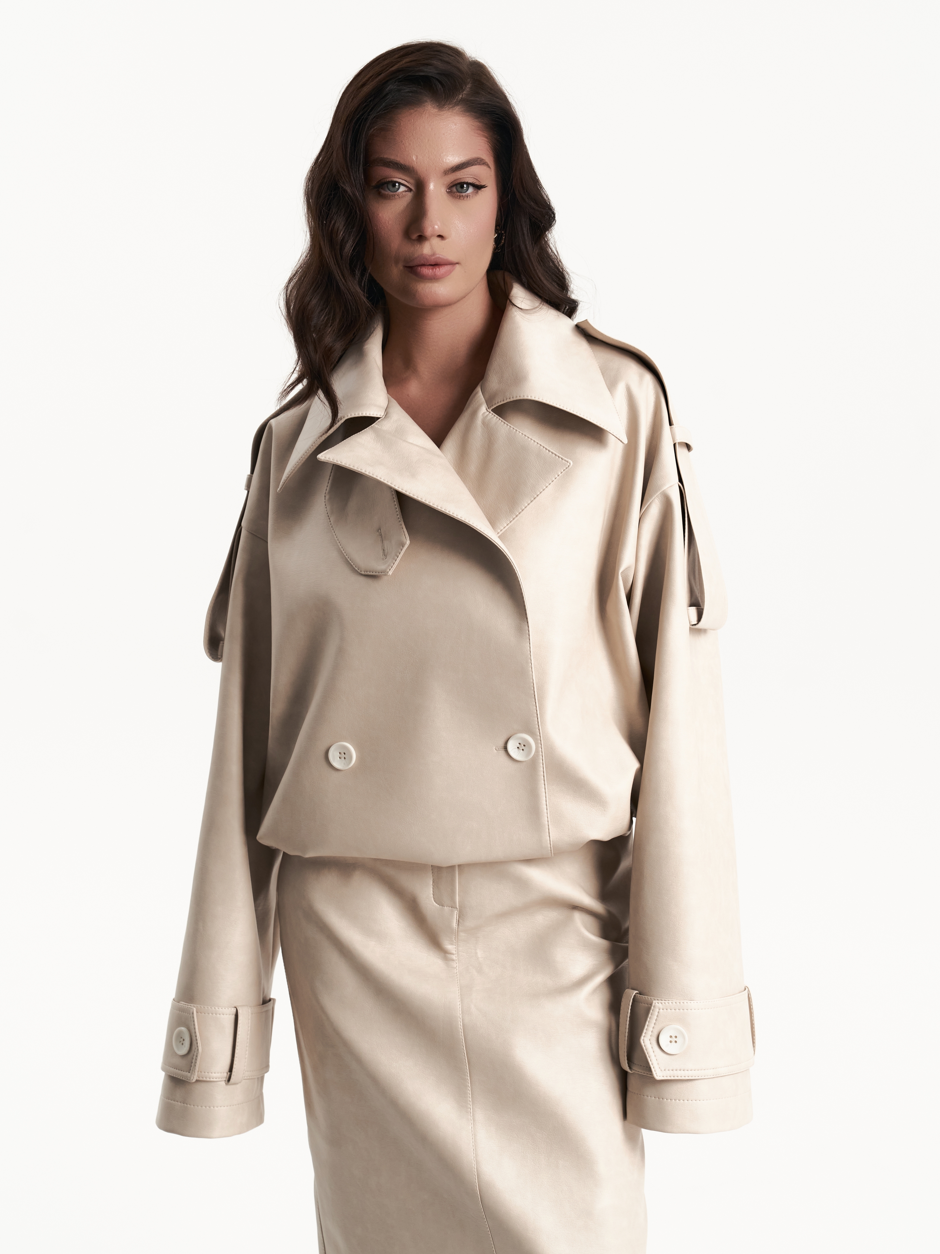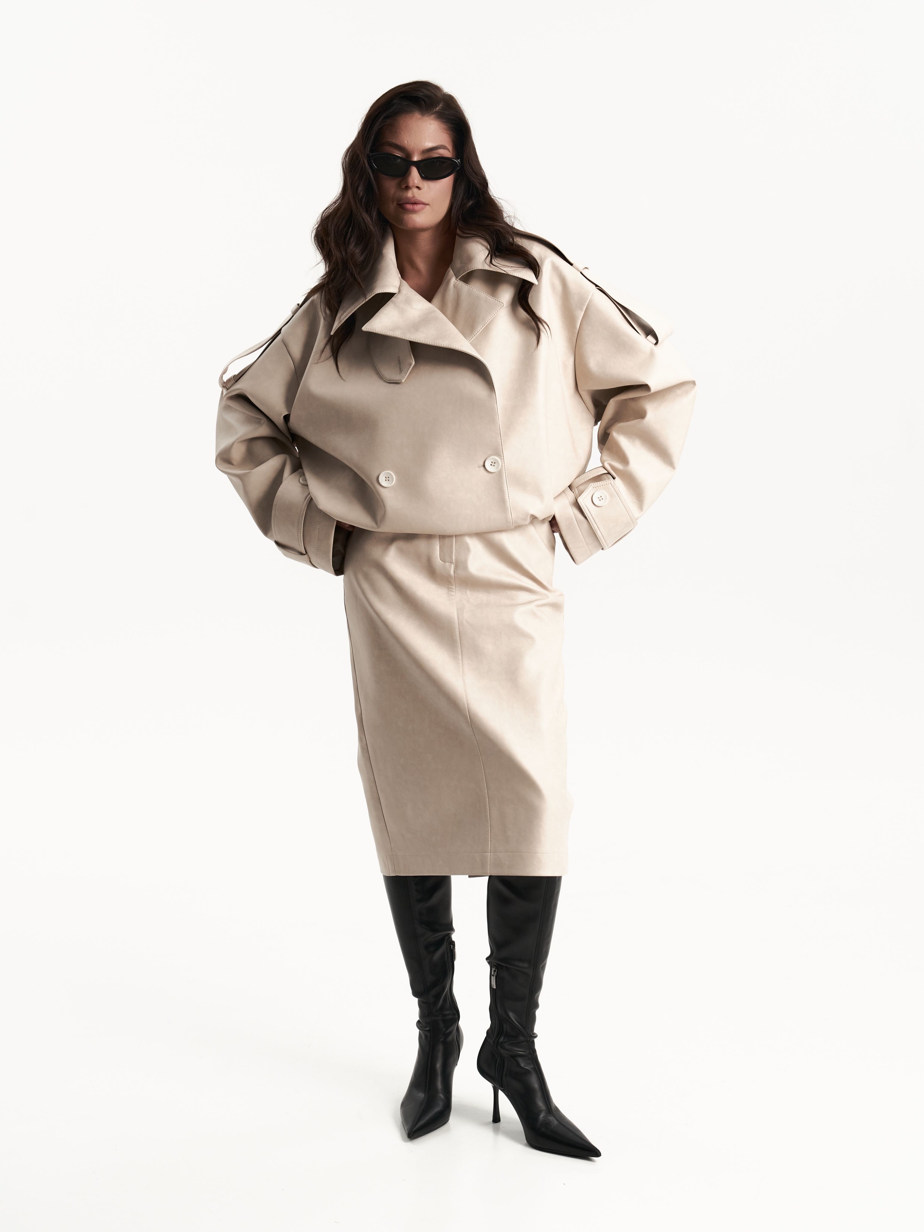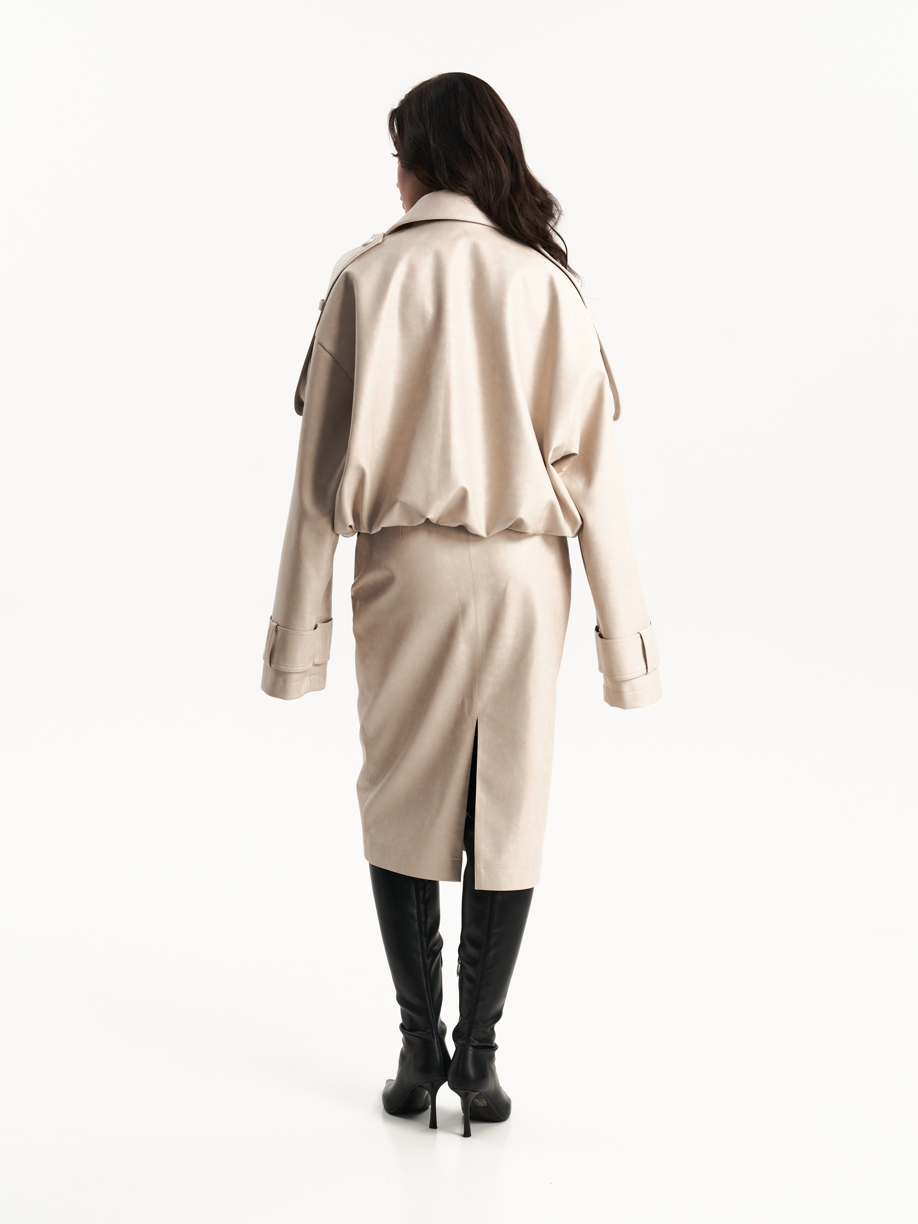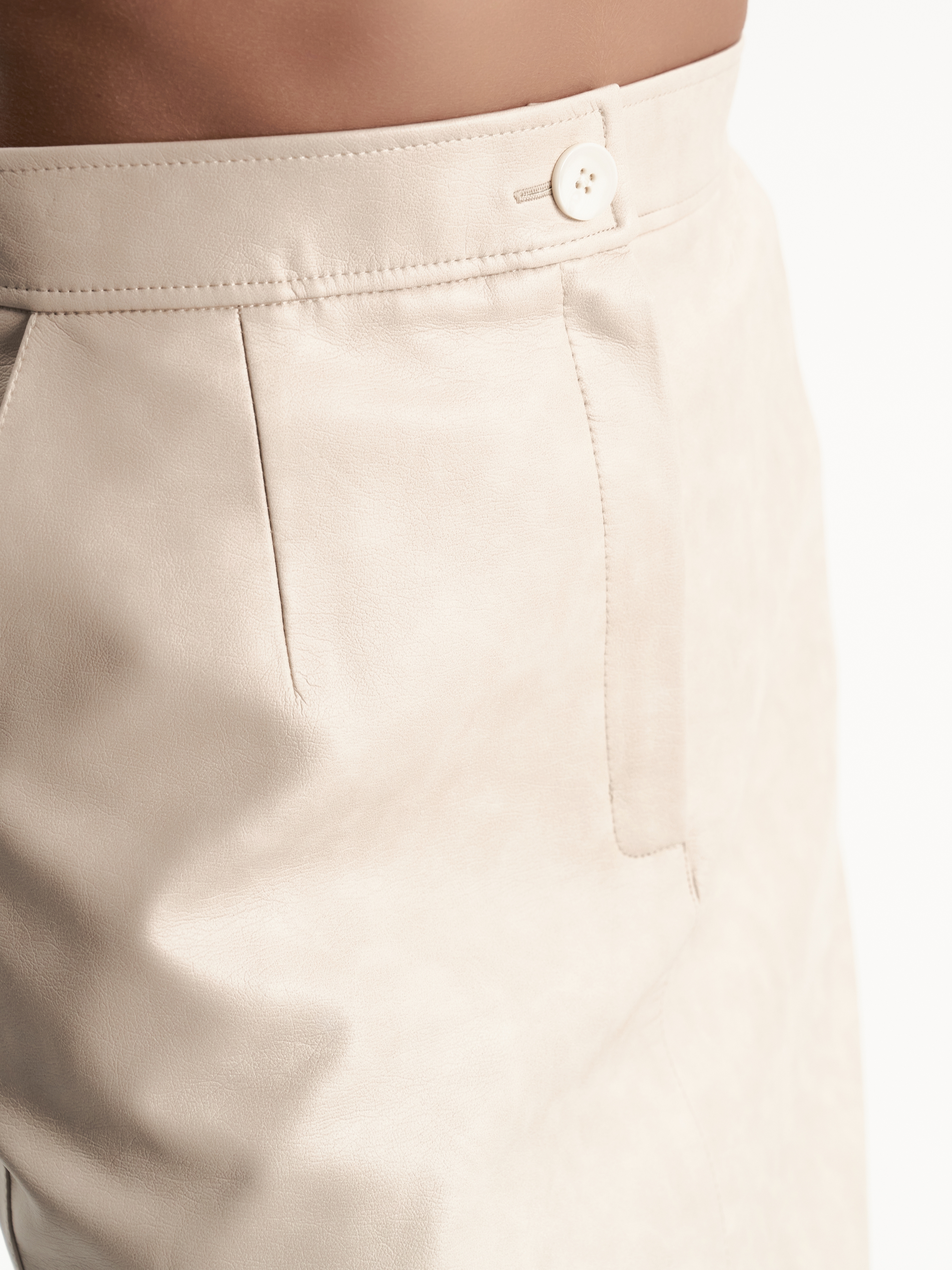 Элегантная прямая юбка миди длины выполнена из гладкой молочно-бежевой ткани. Лаконичный крой без лишних деталей подчеркивает женственность и строгость образа. Высокая посадка акцентирует талию, а классическая длина делает юбку универсальной для различных повседневных и деловых комплектов. Юбка идеально сидит по фигуре, сохраняя стильный и утончённый вид.